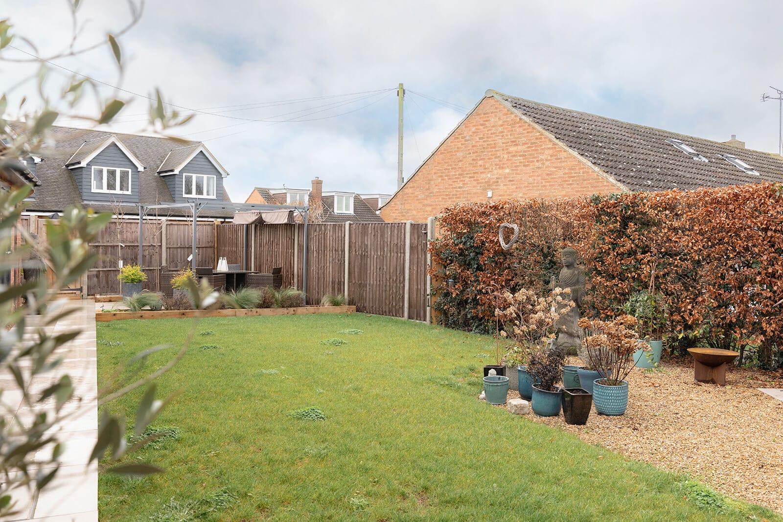 Outside, the wide, south-westerly facing rear garden is both private and thoughtfully landscaped. Predominantly laid to lawn, it is framed by a series of carefully positioned seating areas, including a pergola at one end and a gravelled patio at the other, all designed with sociability and low maintenance in mind. To the front, a substantial driveway with electric car charging provides parking for several vehicles, bordered by a neatly kept lawn and hedgerow. The garage sits to the side of the house with an electrically operated door. Behind the garage there is an additional storage room.
