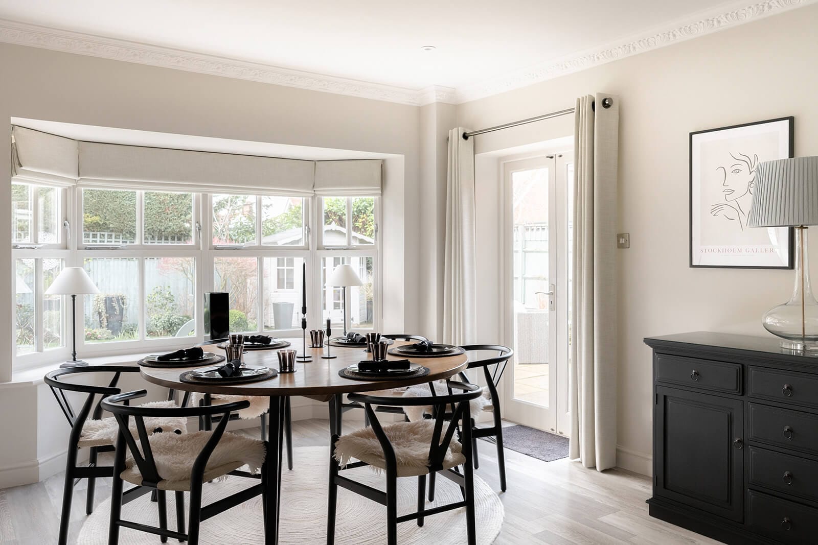 Dining room with wide bay window