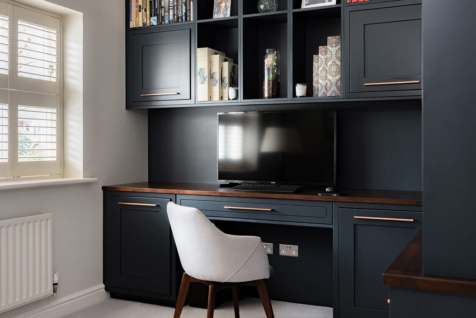 Study with bespoke ink-blue cabinetry