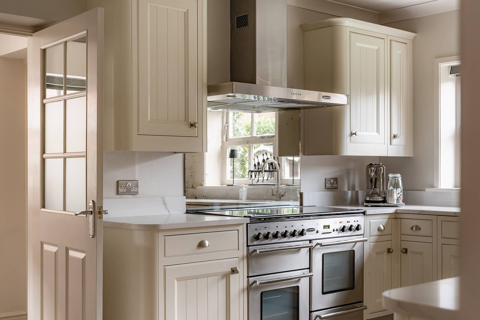 High-quality kitchen with cream cabinetry, granite worktops and adjoining utility