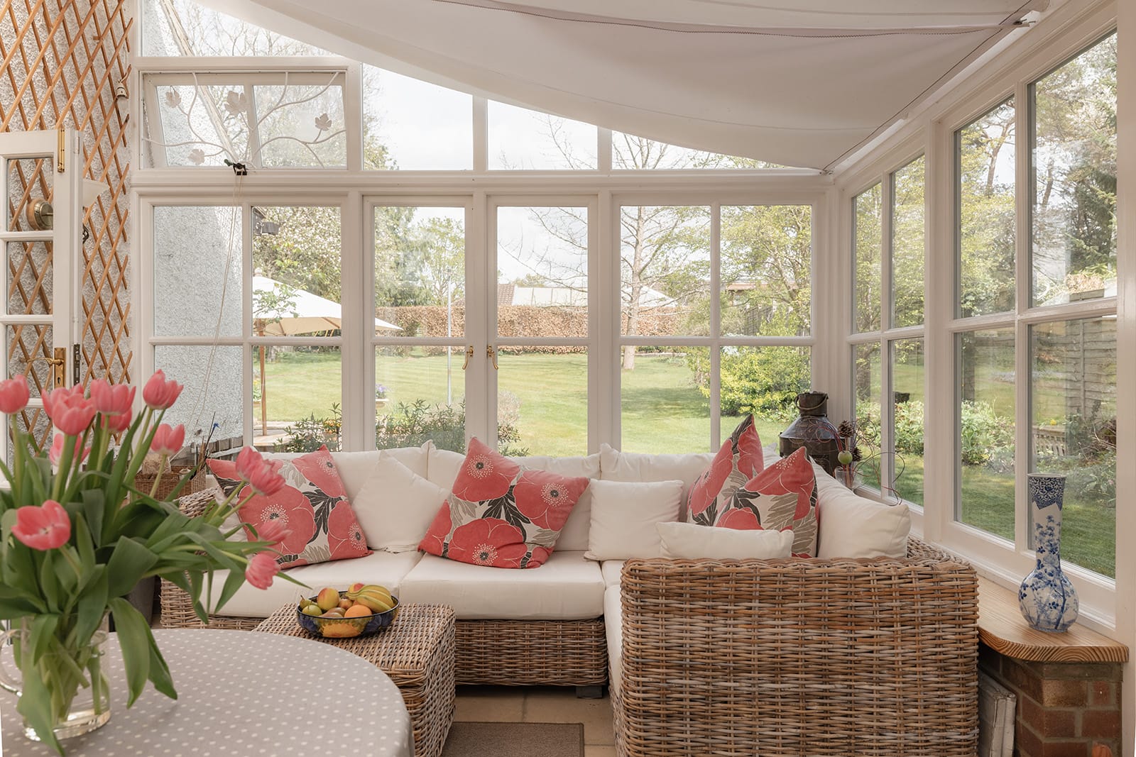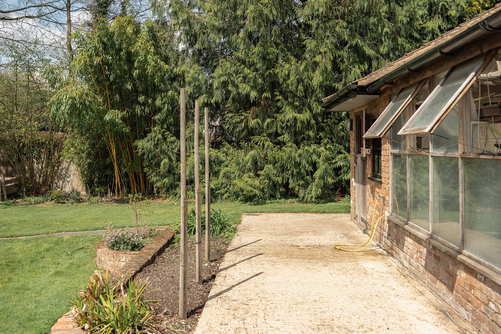 A range of outbuildings sits to the garden’s rear: two brick-built former stables now utilised as a store and potting shed, alongside two vast greenhouses and a mower store. At the front of the house, a detached double garage and large drive provide ample parking for four or more vehicles.
