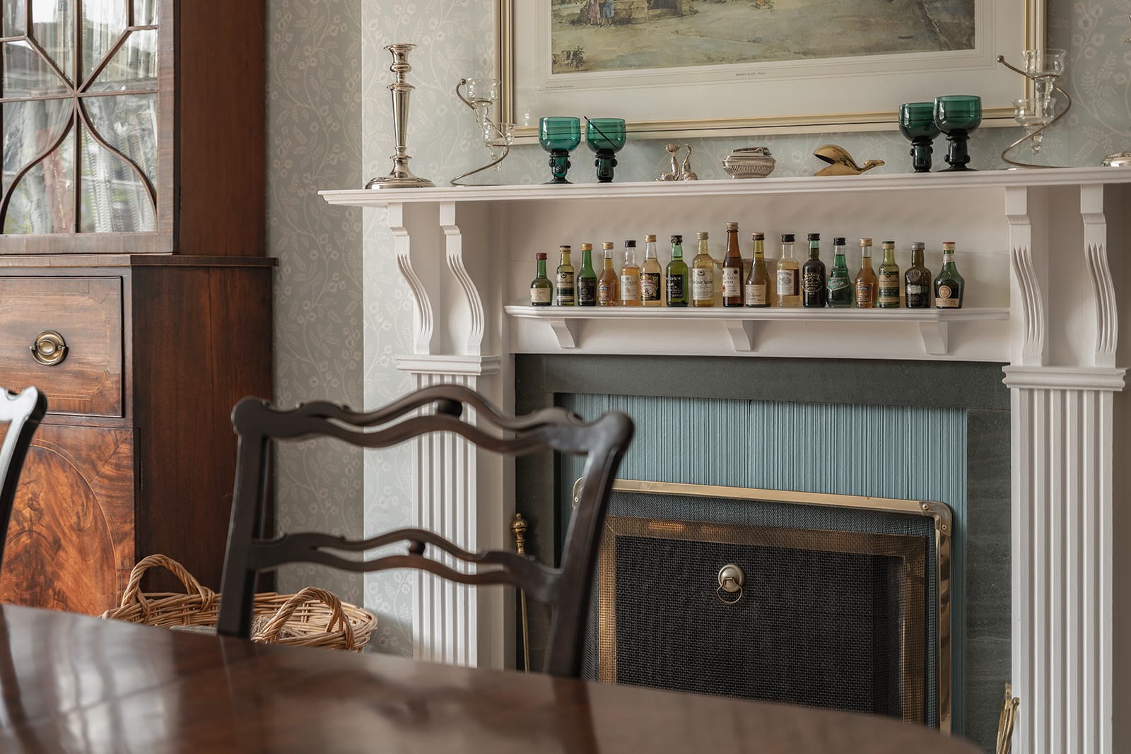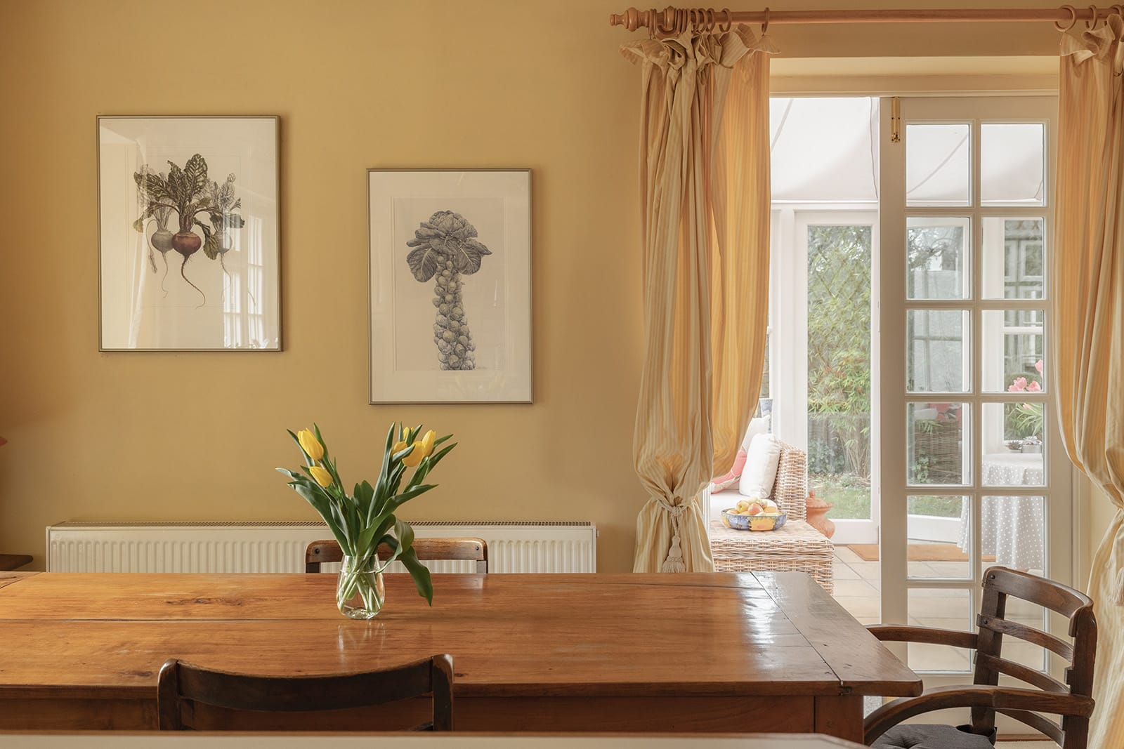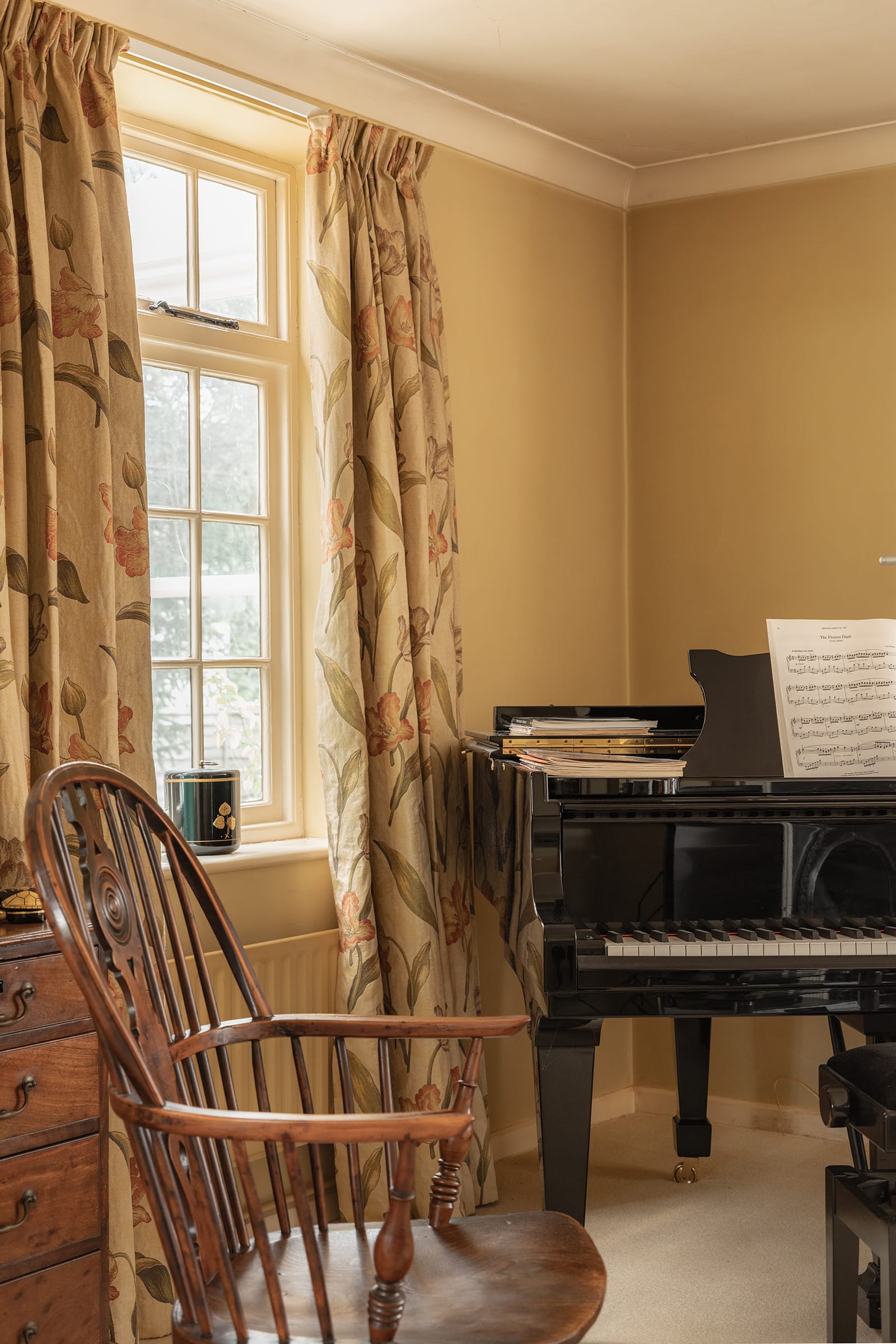 Inside, the architecture unfolds with a calm and classical feel. The hallway introduces a suite of reception rooms designed with versatility in mind. The dual-aspect sitting room is a generous space, large enough to accommodate a baby grand piano to one end, while a fireplace creates a natural focal point. The second reception room – a formal dining room – offers excellent proportions and a sense of occasion.