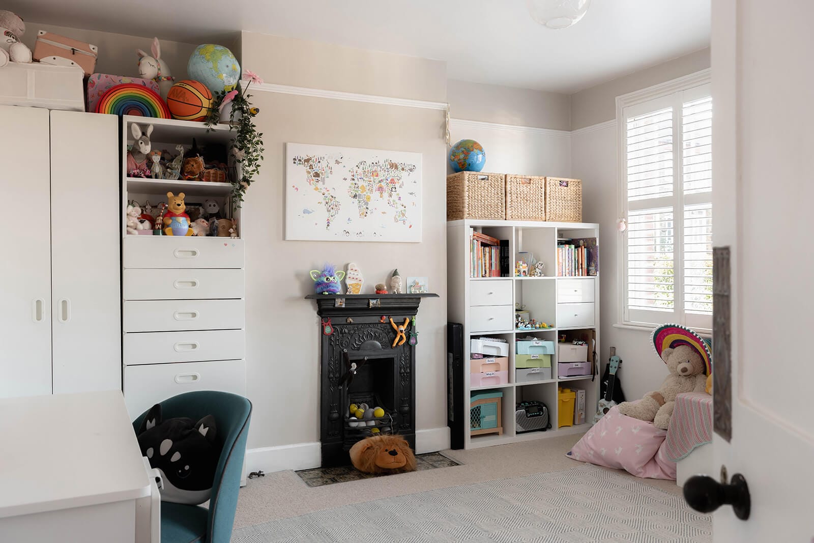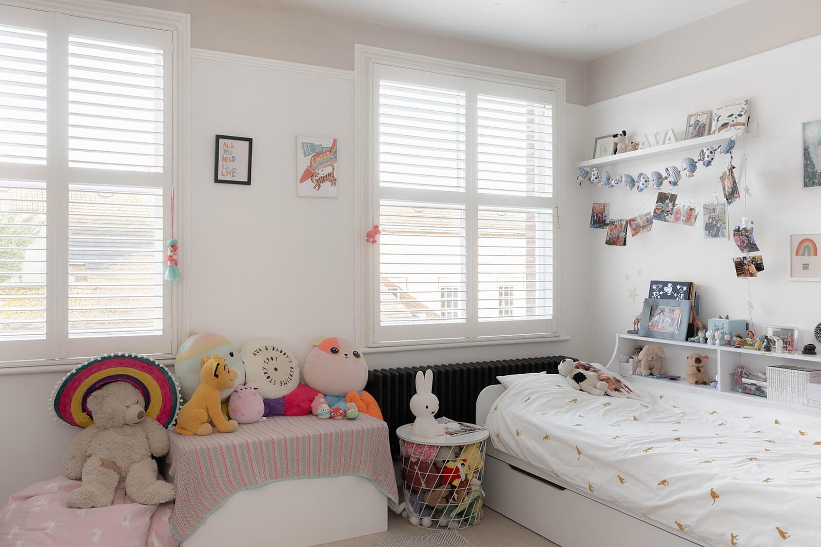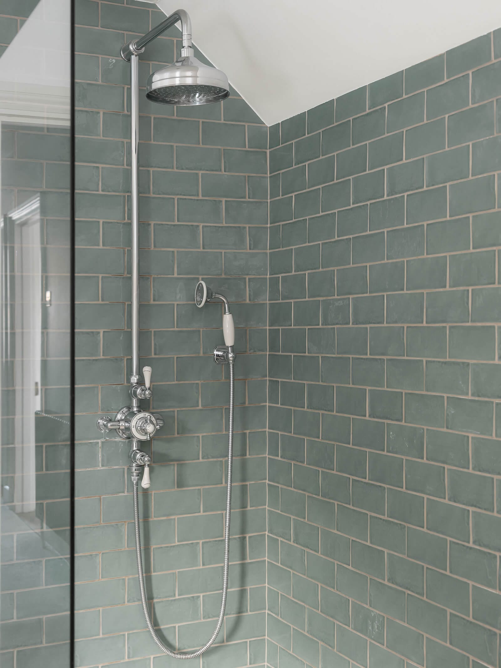 The principal bedroom crowns the top floor. Filled with natural light, it offers clever eaves storage that keeps the space uncluttered, while the en suite, with its traditional detailing and twin basins, brings a sense of quiet luxury.
