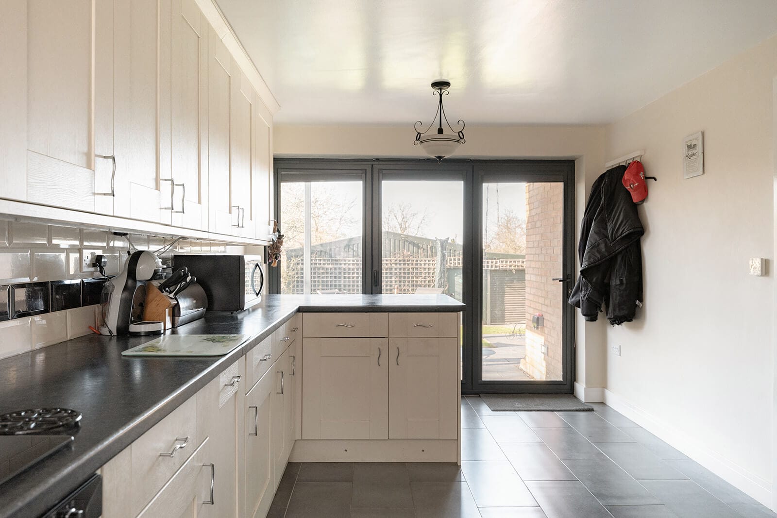 Spacious kitchen/breakfast room with bifold doors to the garden