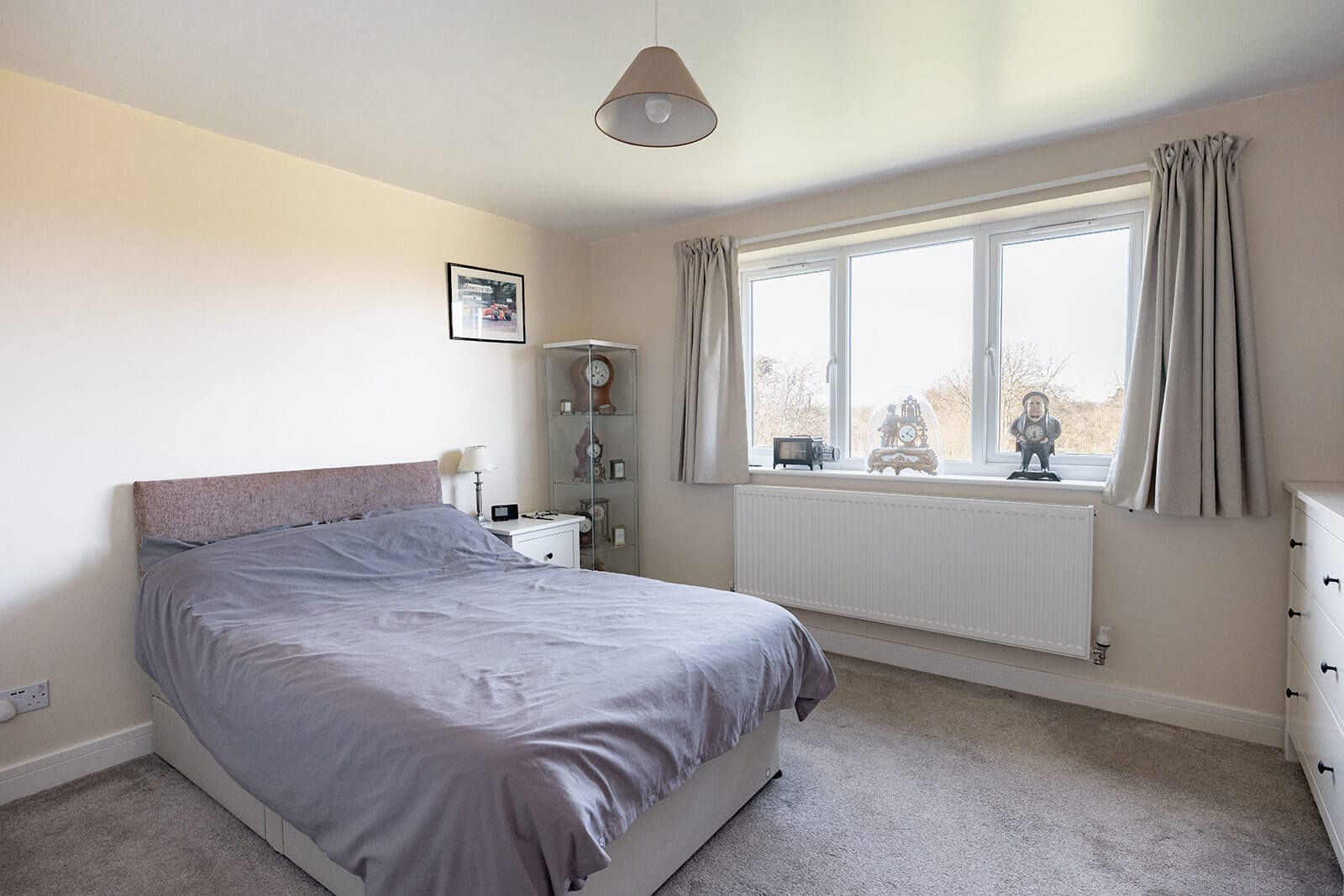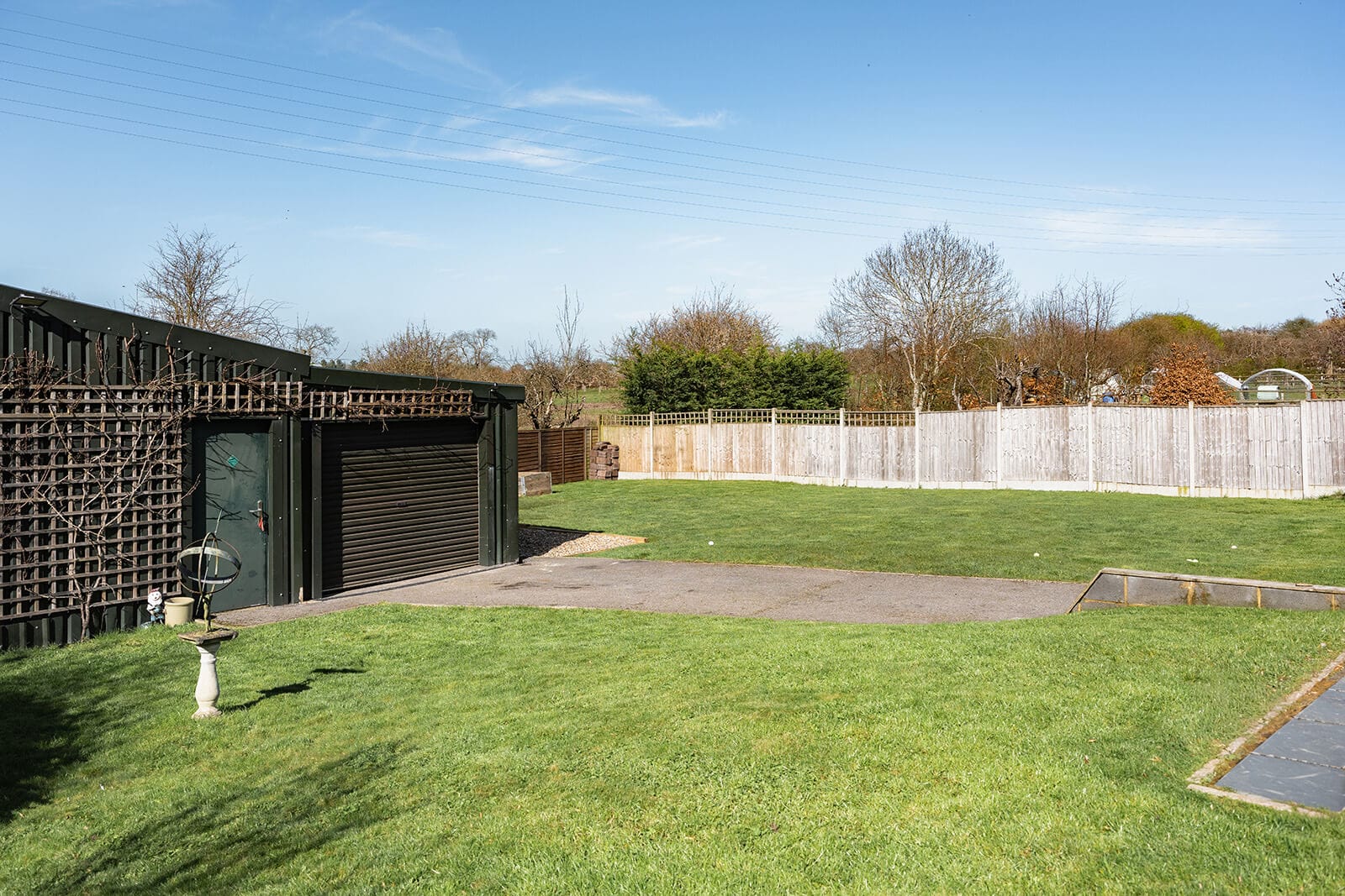 Outside, the scale of the plot becomes clear. The rear garden is extensive and backs directly onto open fields, offering both privacy and scope for further landscaping or enhancement over time.