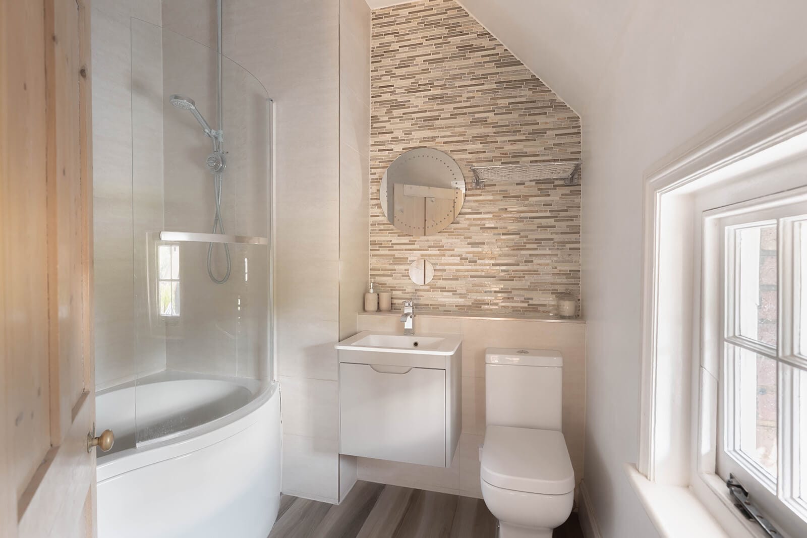 Upstairs, a generous landing leads to three double bedrooms: two which still retain their original fireplaces. The bedrooms are partially set into the deep eaves of the house, adding character and interest to the roofline. A modern family bathroom completes this level.
