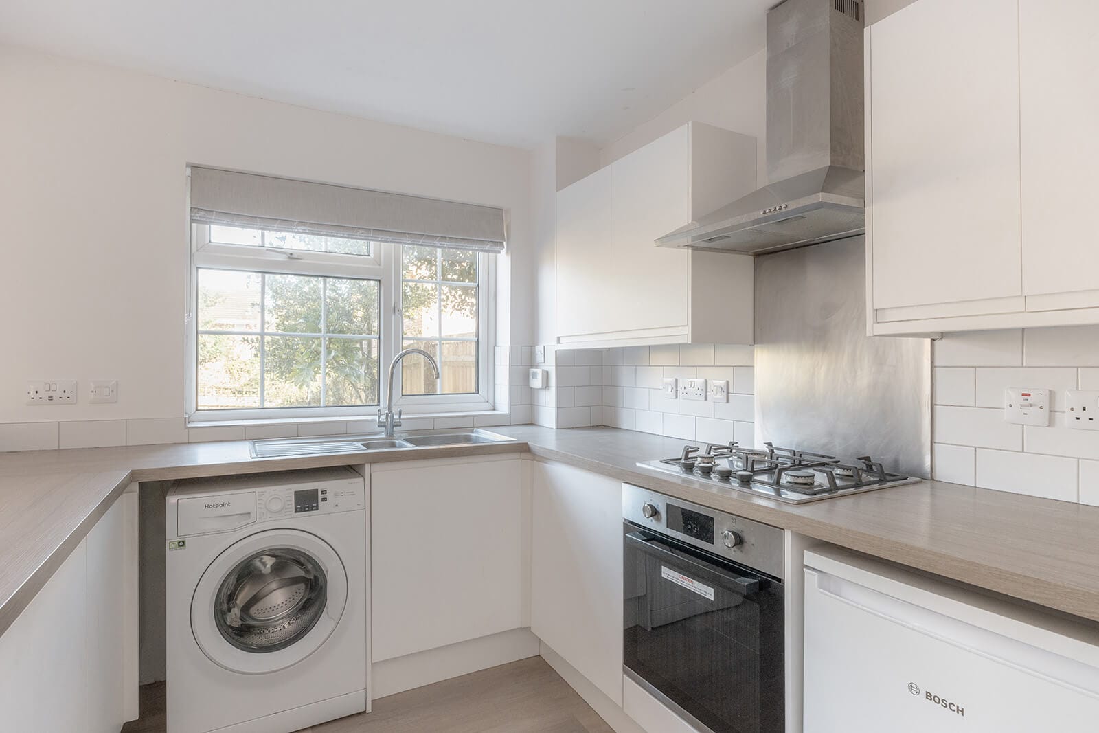 Upstairs, three bedrooms are complemented by a contemporary family bathroom, fitted with a crisp white suite. All three bedrooms are double rooms.
