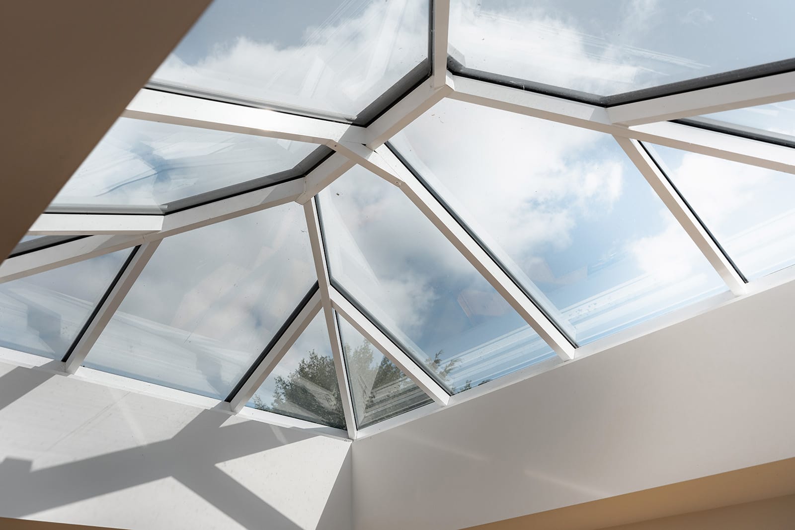 But it is the open-plan kitchen and dining space that really steals the show. Vast and voluminous, the extension transforms the rear elevation, with two sets of glazed bifold doors that peel back to dissolve the corner almost entirely, creating a seamless transition to the garden via a level threshold. Overhead, a dramatic atrium roof floods the space with even more natural light, enhancing its generous proportions and inviting the sky directly into the room. The kitchen itself is well-appointed, with an extensive run of base and wall units, and a central island creating a natural gathering point.