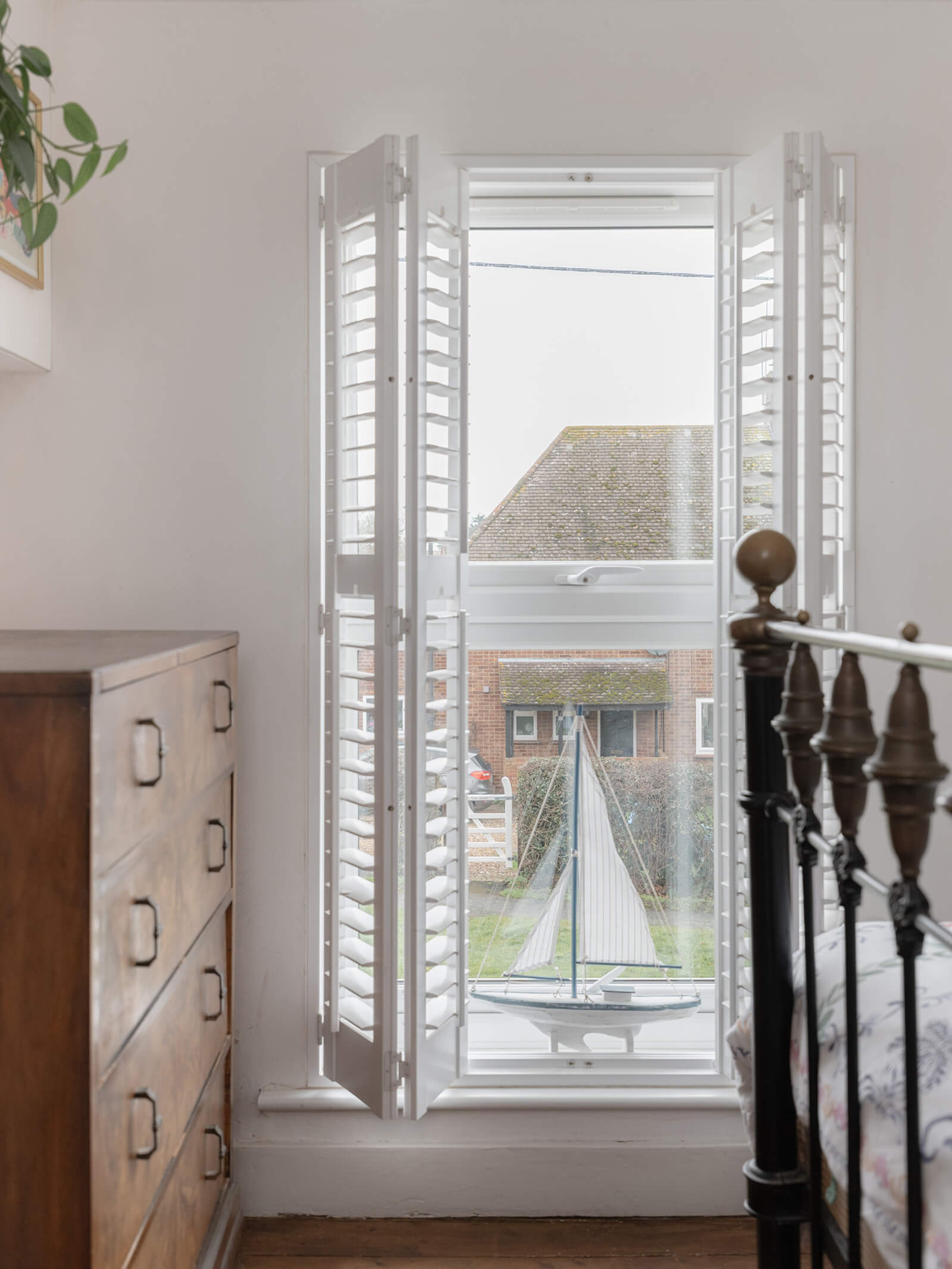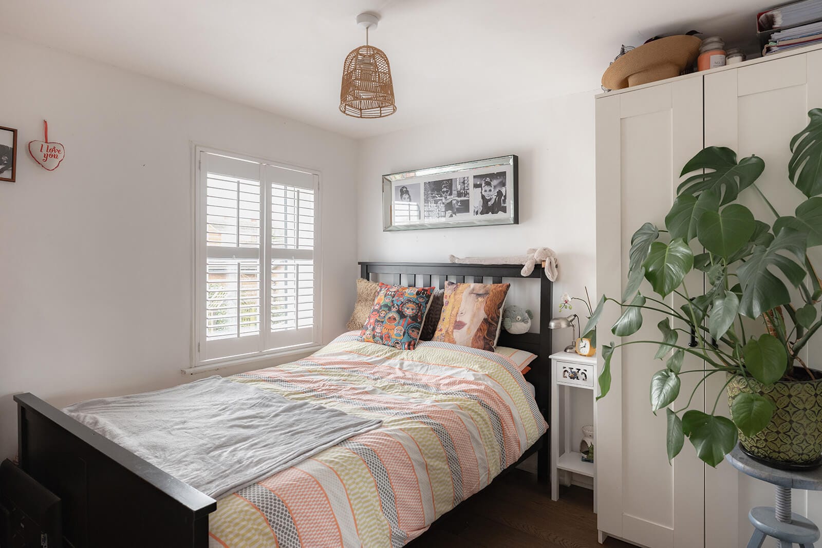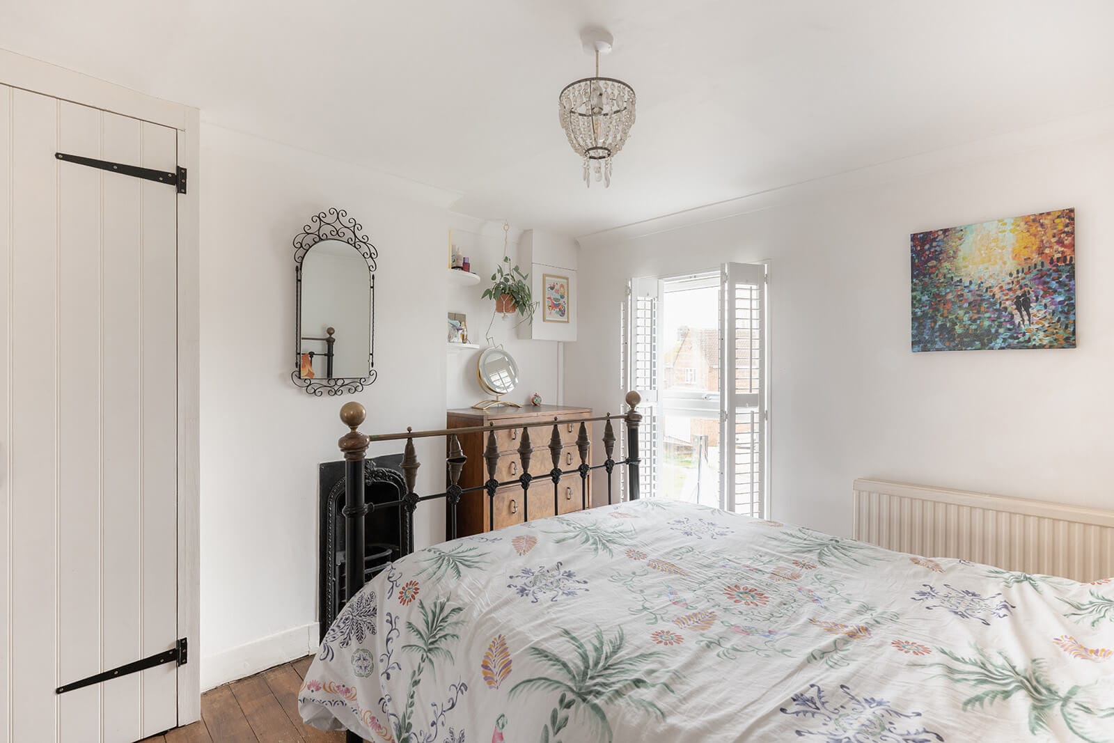 Upstairs, the first floor subtly reconfigures the footprint of the house, widening as it spans the archway below. The result is a notably generous layout, with three double bedrooms, all finished with wooden floors and window shutters. The two largest rooms benefit from built-in wardrobes, and all are served by a spacious family bathroom. Above, a sizeable loft provides additional storage.