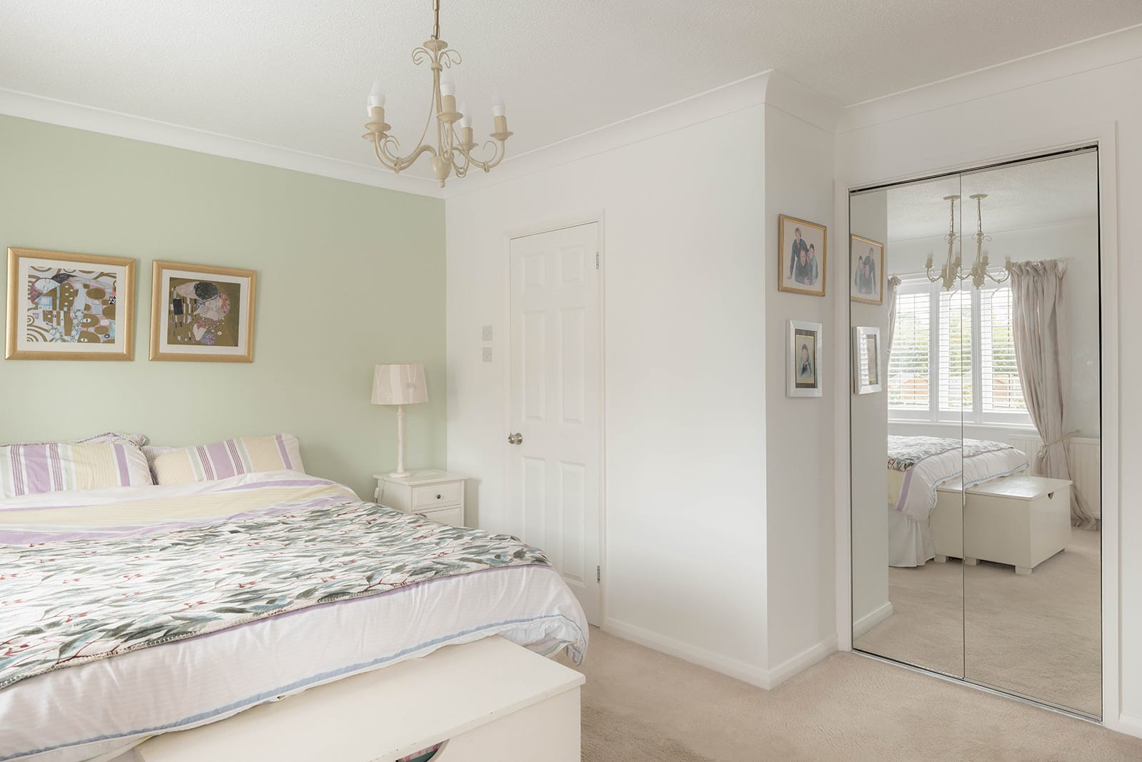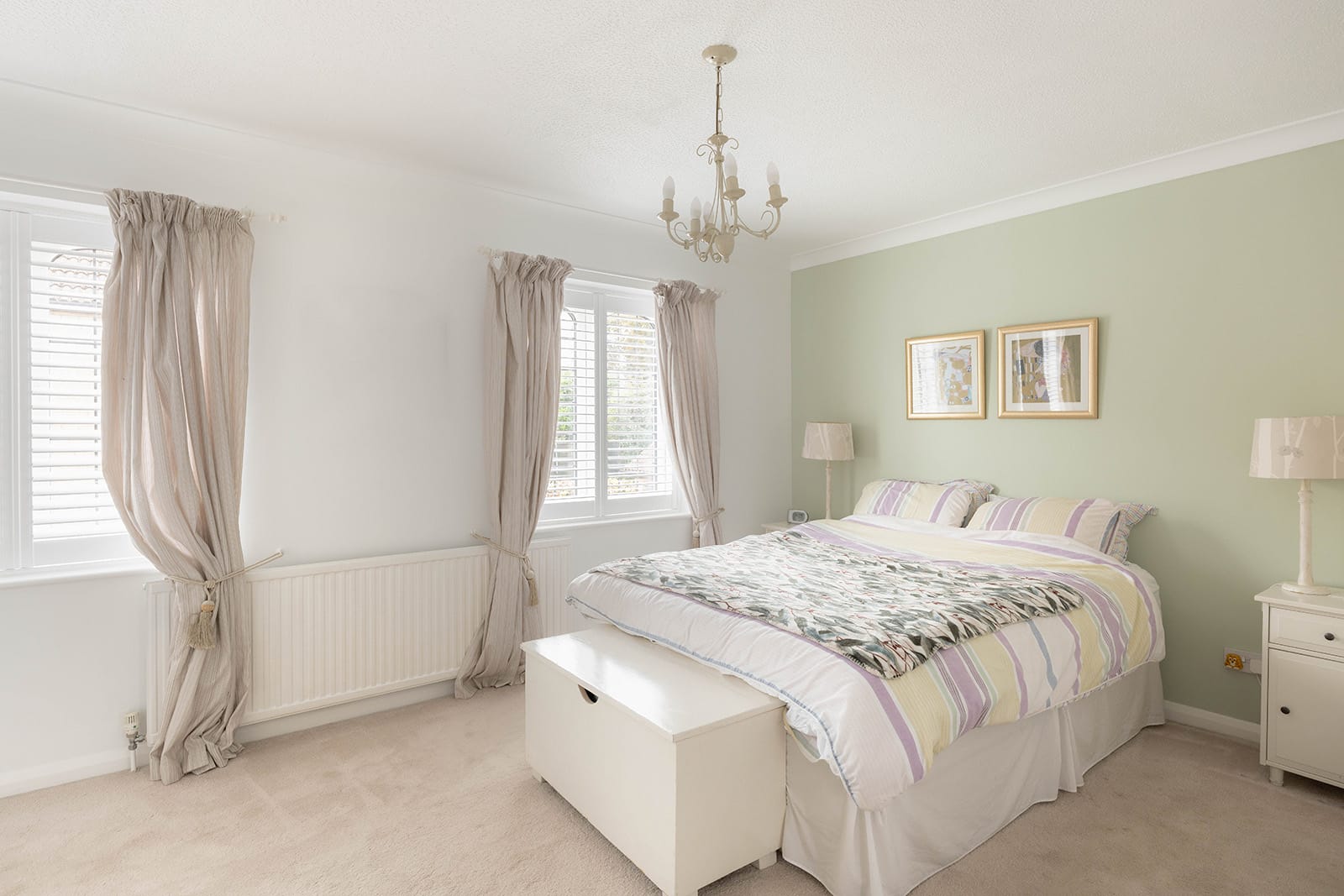 Upstairs, five bedrooms fan out from the landing. Four include fitted wardrobes, while the principal suite is particularly generous, complete with a well-appointed en suite. The remaining bedrooms are served by a family bathroom, finished with equal attention to detail.