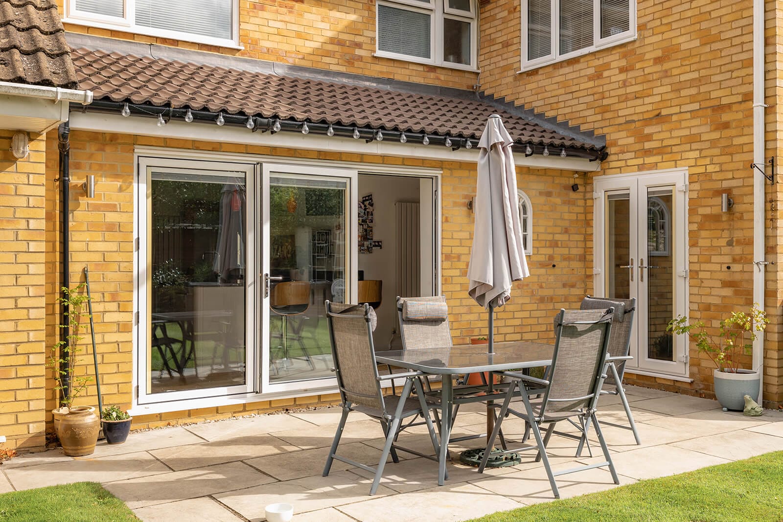 Bifold doors open to a sunny, south-facing garden, perfect for al fresco dining