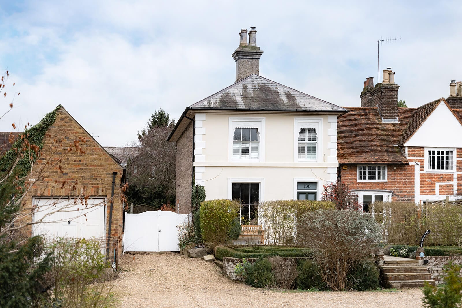 At the front, a gravelled parking area comfortably accommodates five cars, while the formal garden, edged with clipped box hedging, offers a nod to that Georgian order and symmetry. To the side, a detached outbuilding currently serves as a workshop and double-length garage. Planning consent was granted in February 2026 (ref: 26/00135/FHA) to convert it into a self-contained annexe, creating a useful addition to the existing accommodation.