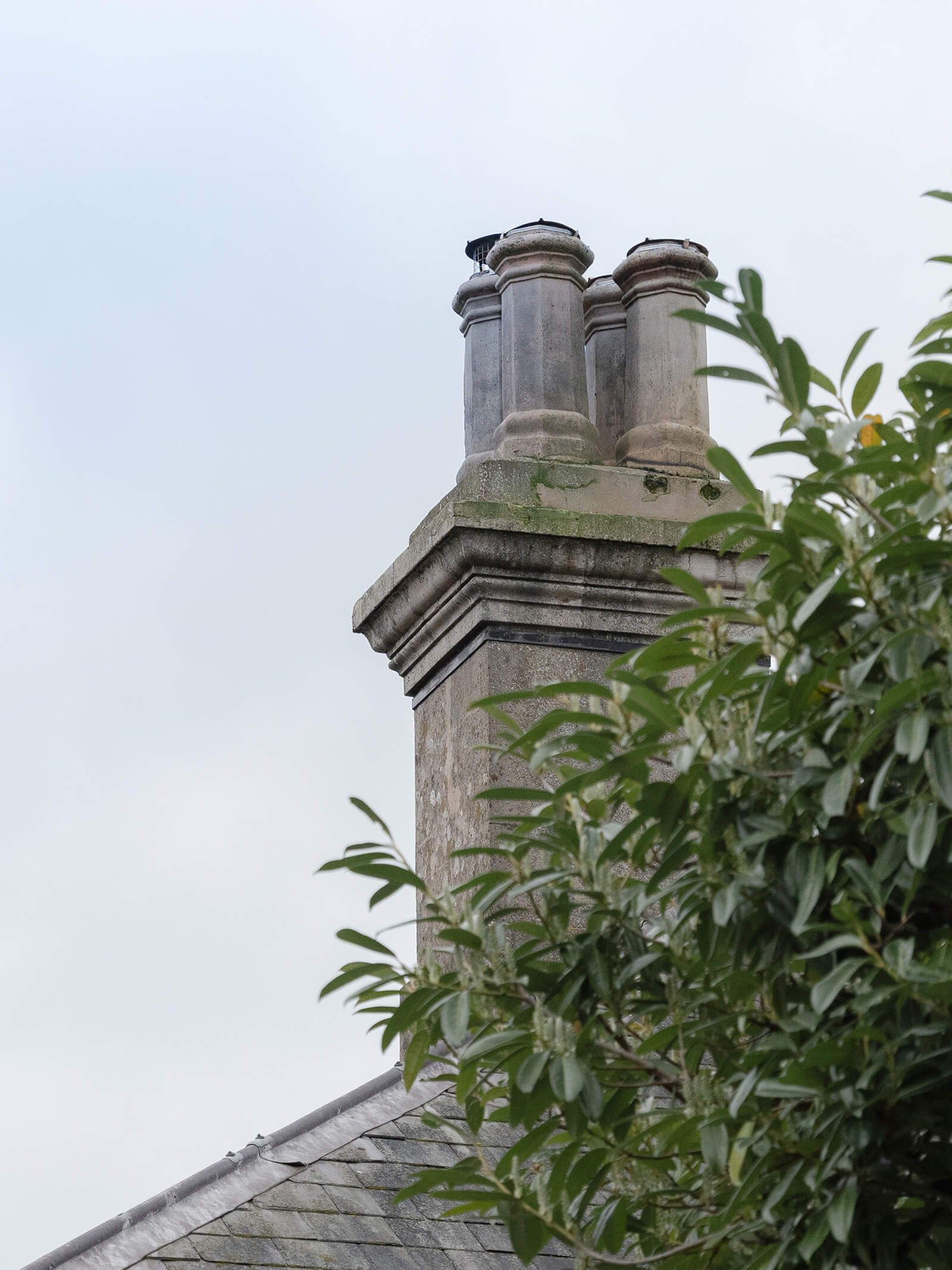 • Early 19th century home with white stucco render and ashlar quoins