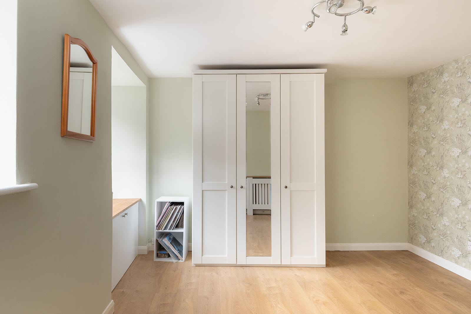 The entrance hall sets a practical tone and leads to one of the two double bedrooms, positioned on the ground floor. Generous in scale, this room features a pretty bay window with fitted storage below. From the hallway, stairs rise to the first floor, where the remaining accommodation unfolds.