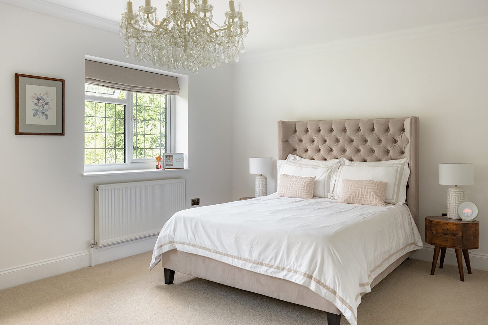 Upstairs, the home continues its narrative of comfort and poise. The principal bedroom is generous, its en suite finished with a marble-topped vanity and walk-in rainfall shower; spaces where both material and proportion have been thoughtfully curated. Bedroom two also benefits from its own beautifully appointed en suite, while the remaining rooms share a modern family bathroom. The front bedrooms all benefit from views across farmland opposite.