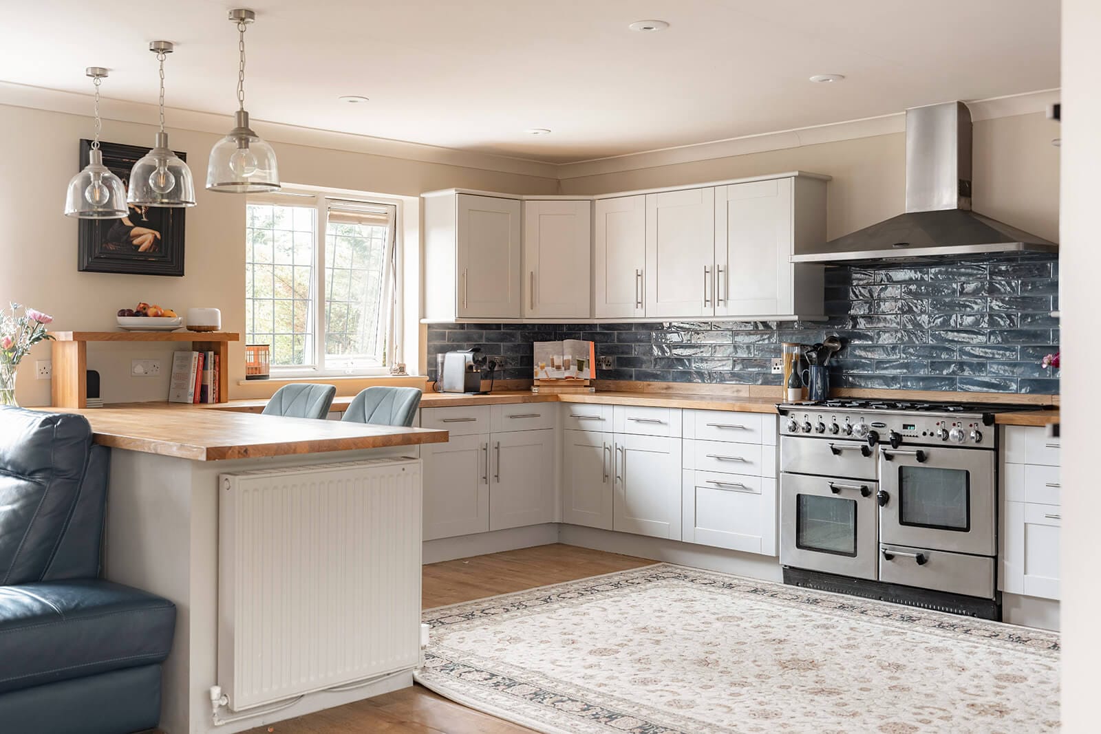 Spacious open-plan kitchen, dining and family room with garden access