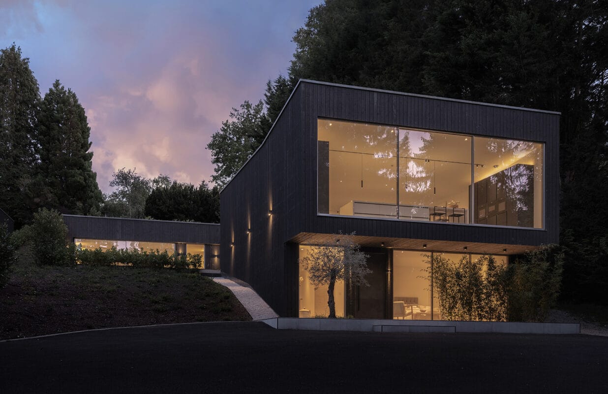 Wrapped in charred timber cladding the house sits with quiet confidence in its setting. The facade’s textural warmth hints at the meticulous craftsmanship within, where a considered plan has been devised to offer both generosity of scale and intimate connection to the outdoors.