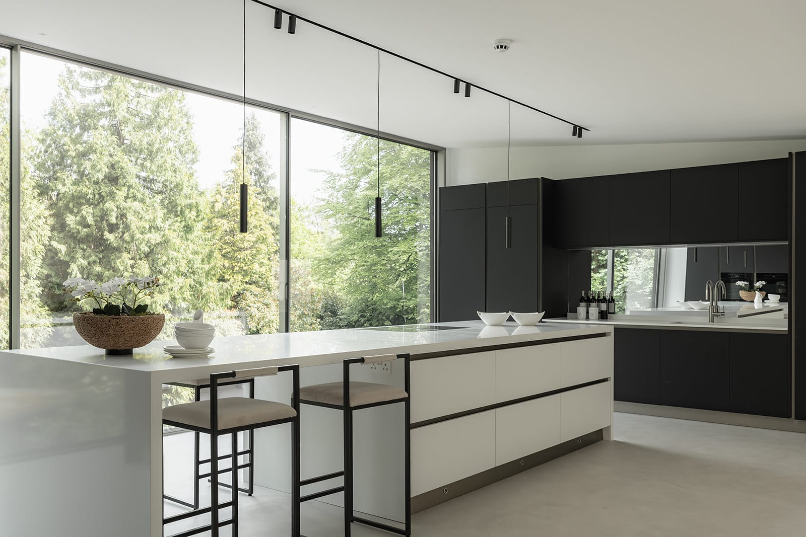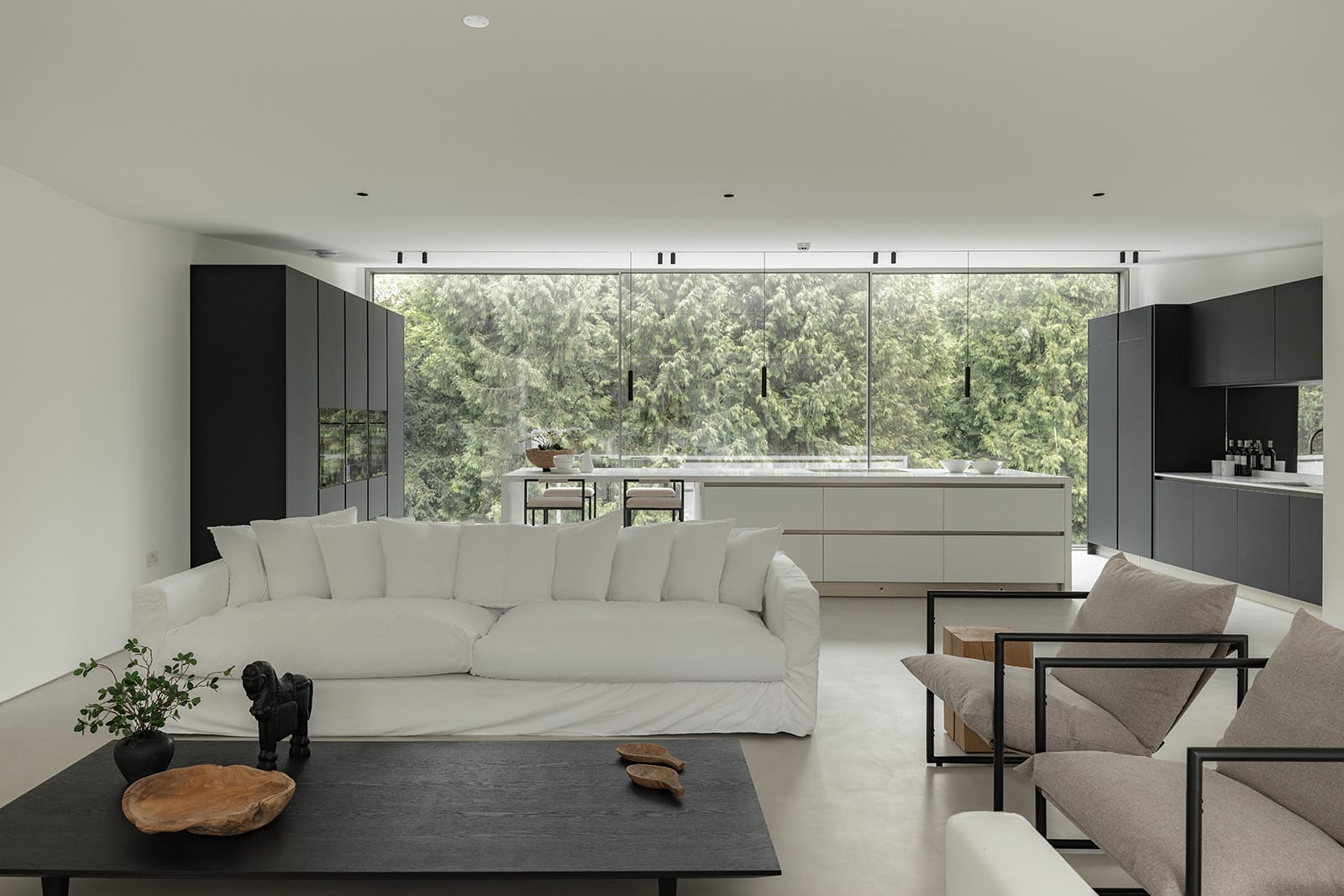 A designed lighting scheme enhances the sculptural quality of each space, and a Lutron system installed across the main living areas and external zones allows for effortless modulation of mood and ambience throughout the day.