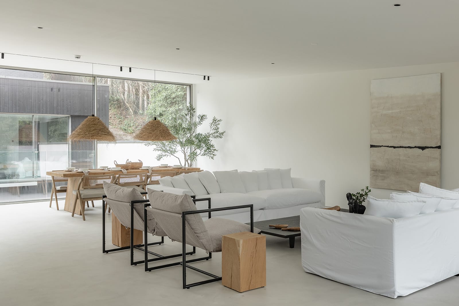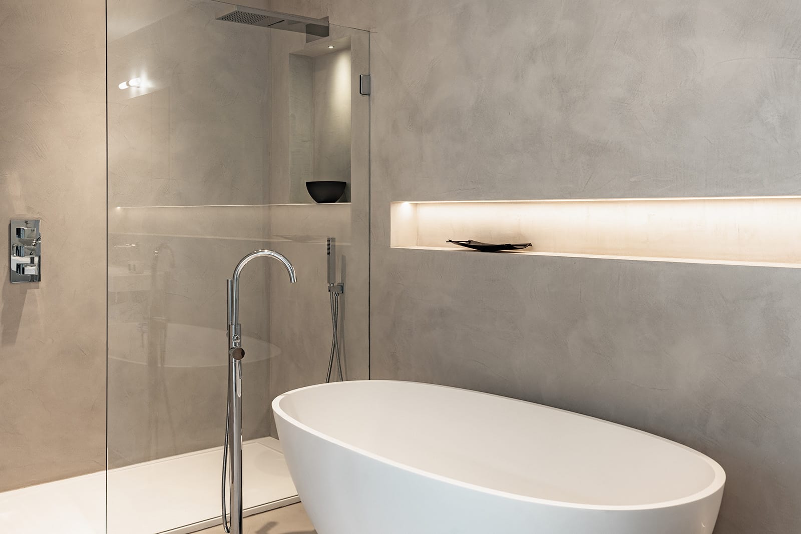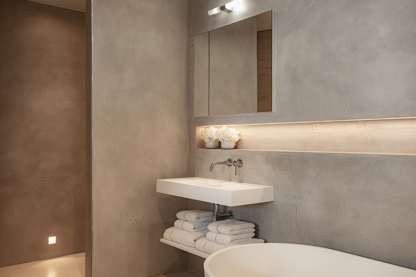 Microcement floors throughout and walls and floors for bathrooms and shower rooms