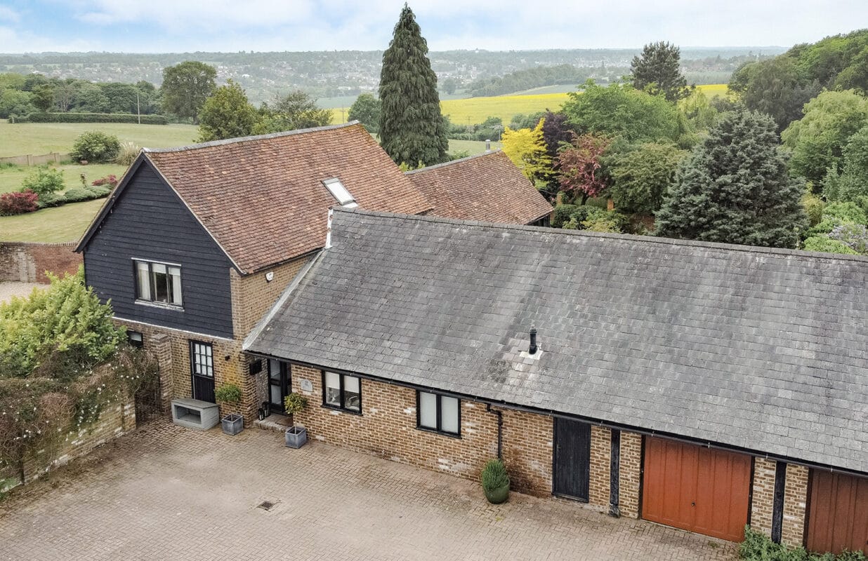 Housed within the bones of a 19th-century granary, this beautifully reimagined home sits within a quiet courtyard of sensitively restored Victorian farm buildings, where mellow brickwork and traditional weatherboarding lend an enduring sense of provenance. Positioned on the edge of Potten End, the setting is exceptional – rural yet not remote – offering sweeping countryside views and quick access to the independent shops, restaurants, and cafes of nearby Berkhamsted.