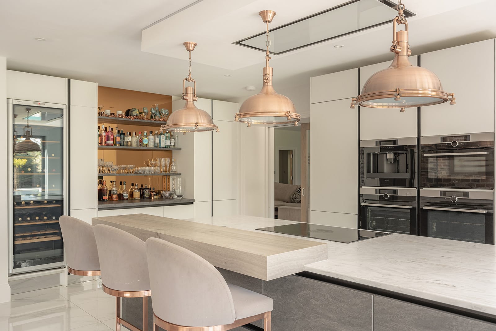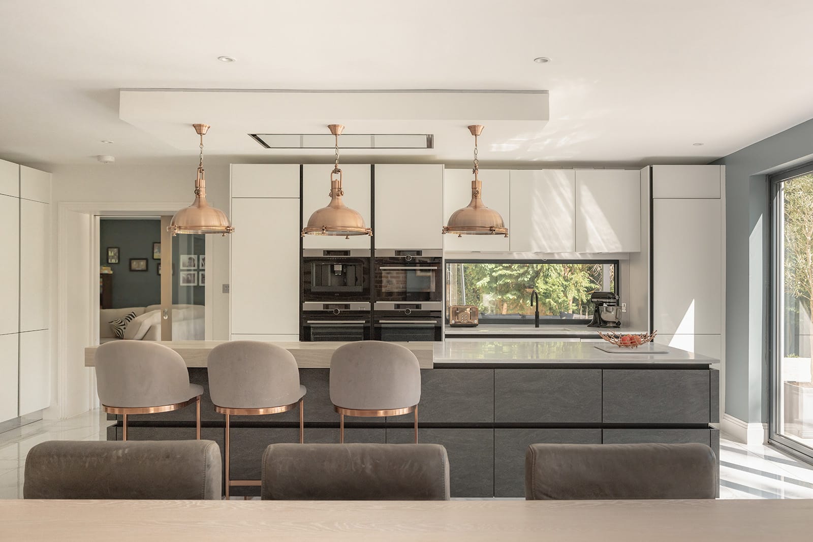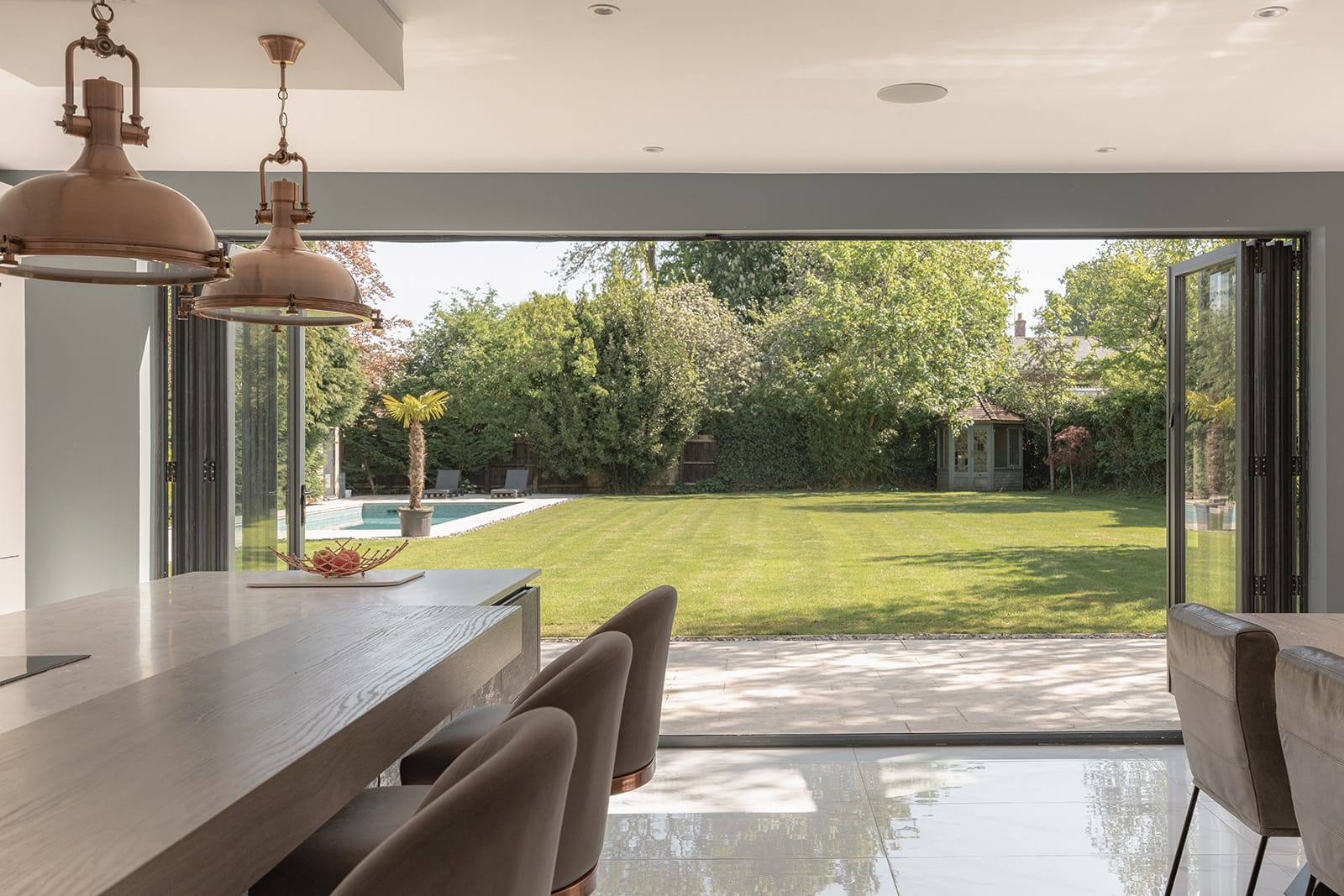 Expansive, triple-aspect kitchen/dining space with bifold glazing and central island