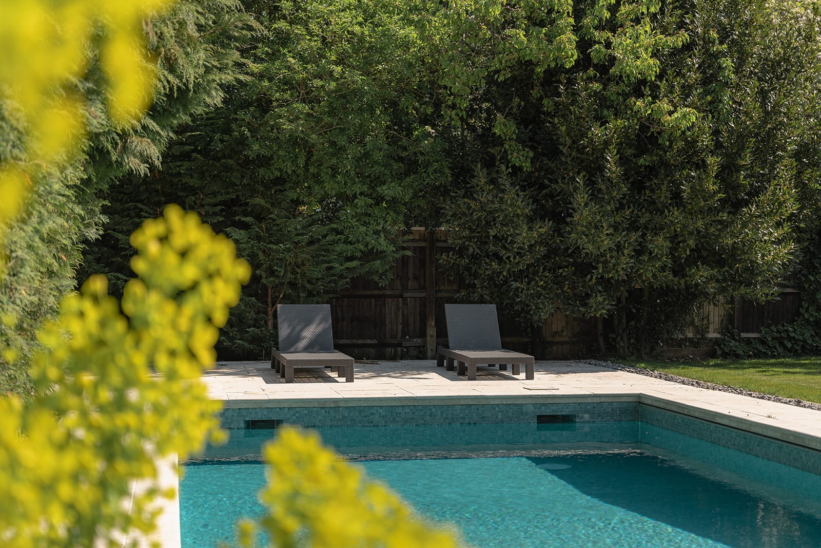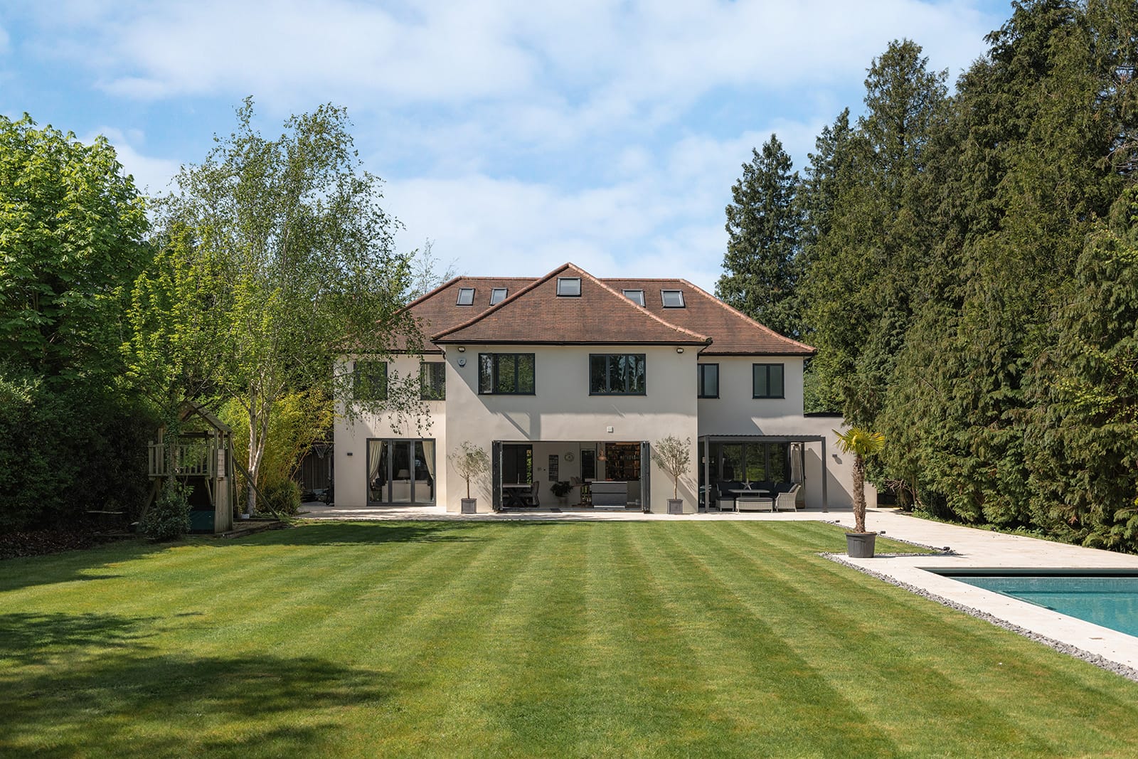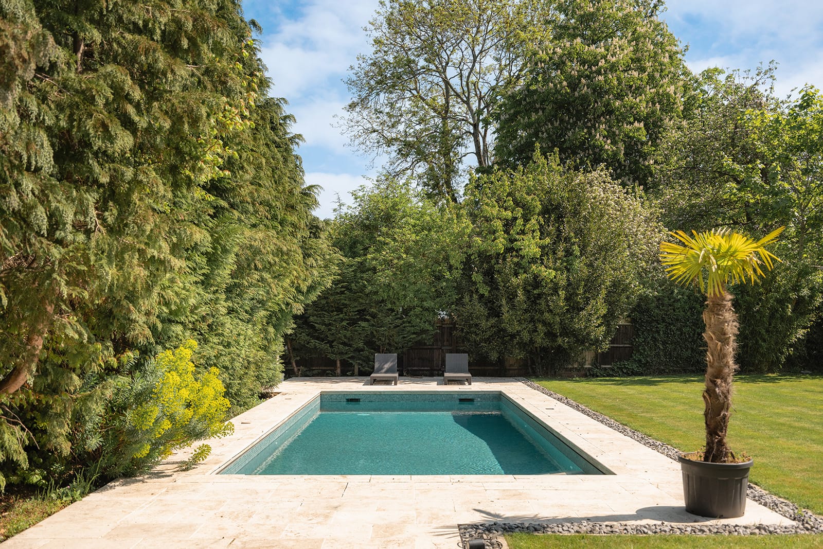 Outside, privacy is assured via an in-and-out driveway set behind automatic gates with an integrated entryphone system. The landscaped frontage offers ample parking for six vehicles, while the rear garden extends to approximately 100 ft; laid to lawn, it has a broad stone terrace running the full width of the house, together with a covered terrace which offers a shaded retreat – ideal for drawn-out summer evenings. At the far end of the garden, a 10m heated swimming pool adds a note of leisure, while a discreet pool house contains the plant for heating and filtration. For ultimate peace of mind, the pool is fitted with a Coverstar automatic safety cover. In all, the plot extends to approximately 0.32 acre.
