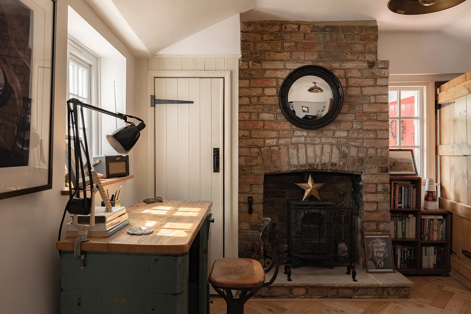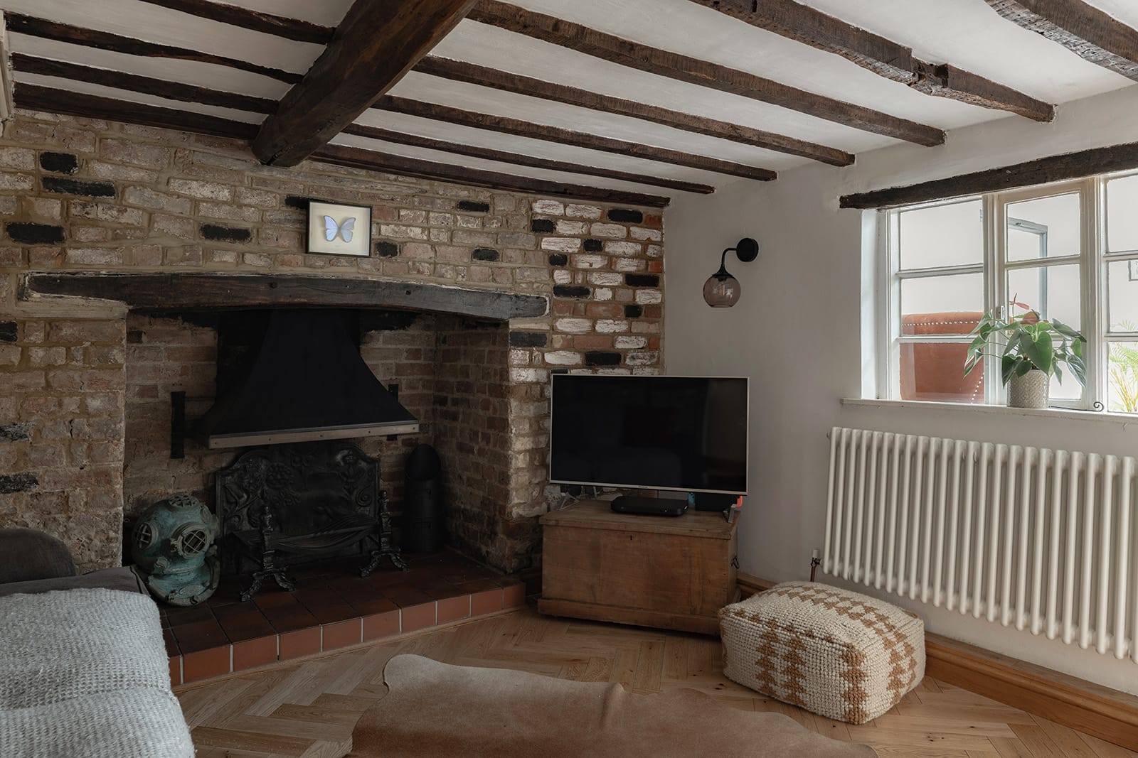 The cottage is not part of a cluster, but rather stands apart – its historic fabric and pastoral character offering a striking contrast to its 20th-century neighbours. This juxtaposition is echoed in the house itself, where a bold, contemporary single-storey extension has been added to the rear, creating a compelling interplay between the warmth of historic detail and the light-filled openness of modern design.