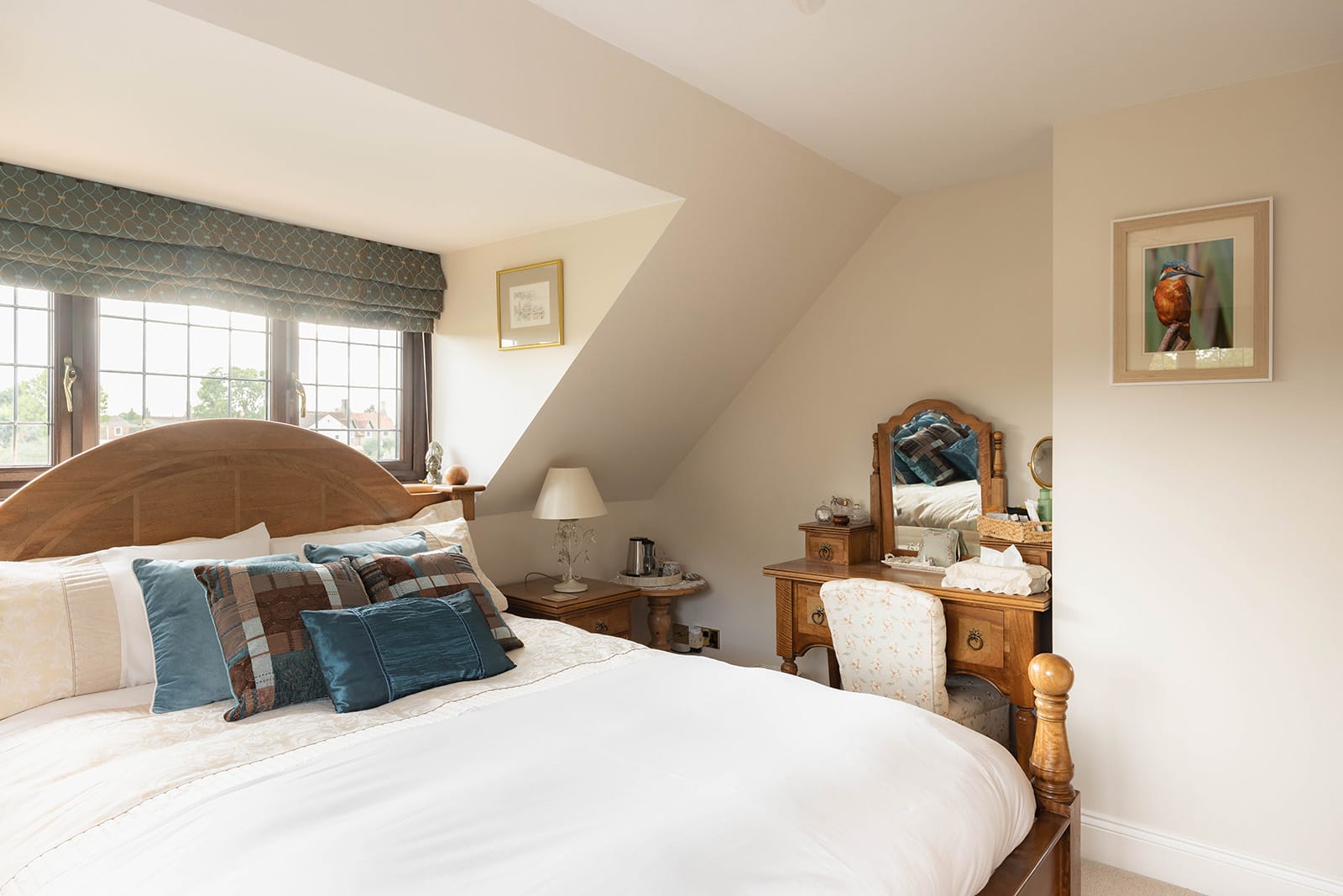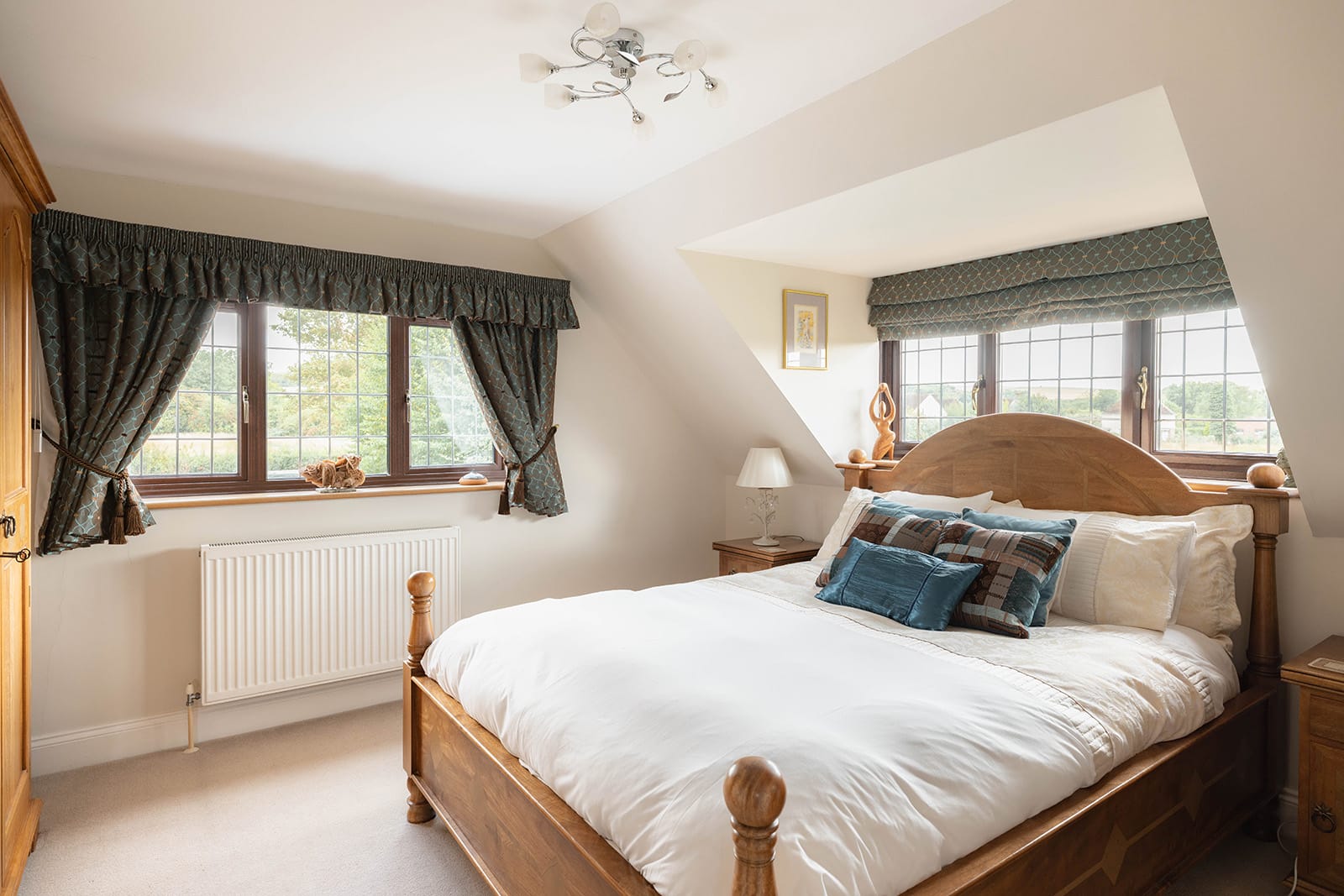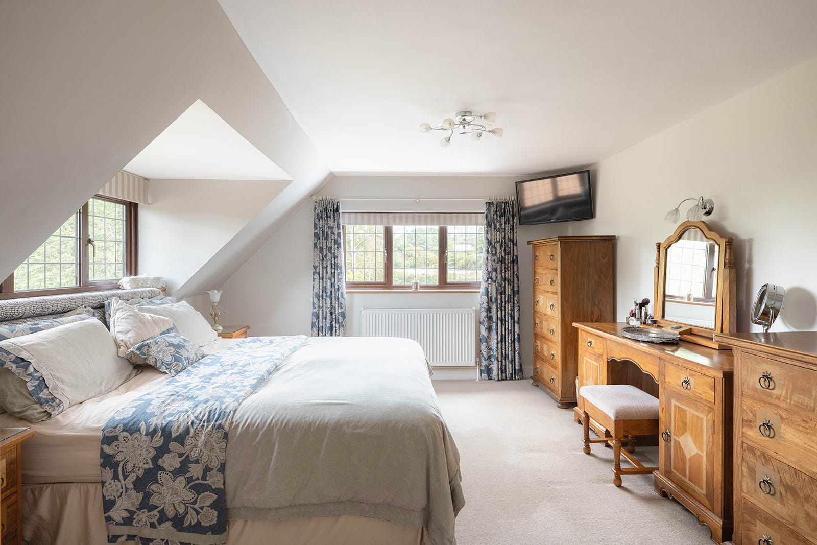 Generous principal bedroom with fitted wardrobes and en suite and three further double bedrooms