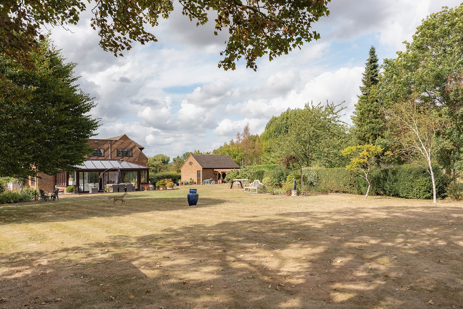 Externally, the grounds stretch to around half an acre. The rear garden measures approximately 130ft in length and is mostly laid to lawn, interspersed with mature shrubs and specimen trees that lend texture and seasonal interest. Several seating areas invite quiet contemplation or al fresco dining.