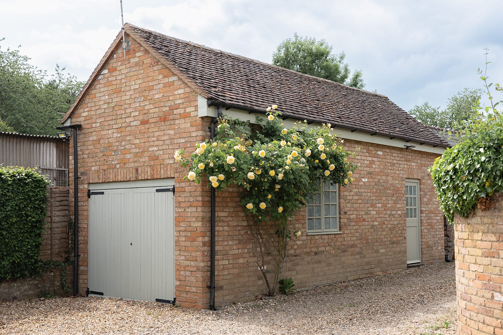 A wide parking area sits beyond, with room for two/three vehicles, and leads to a converted garage, now a useful annexe building arranged over two floors. Whether used as guest accommodation, a creative studio, a gym or workspace, this ancillary building brings further opportunity and flexibility.