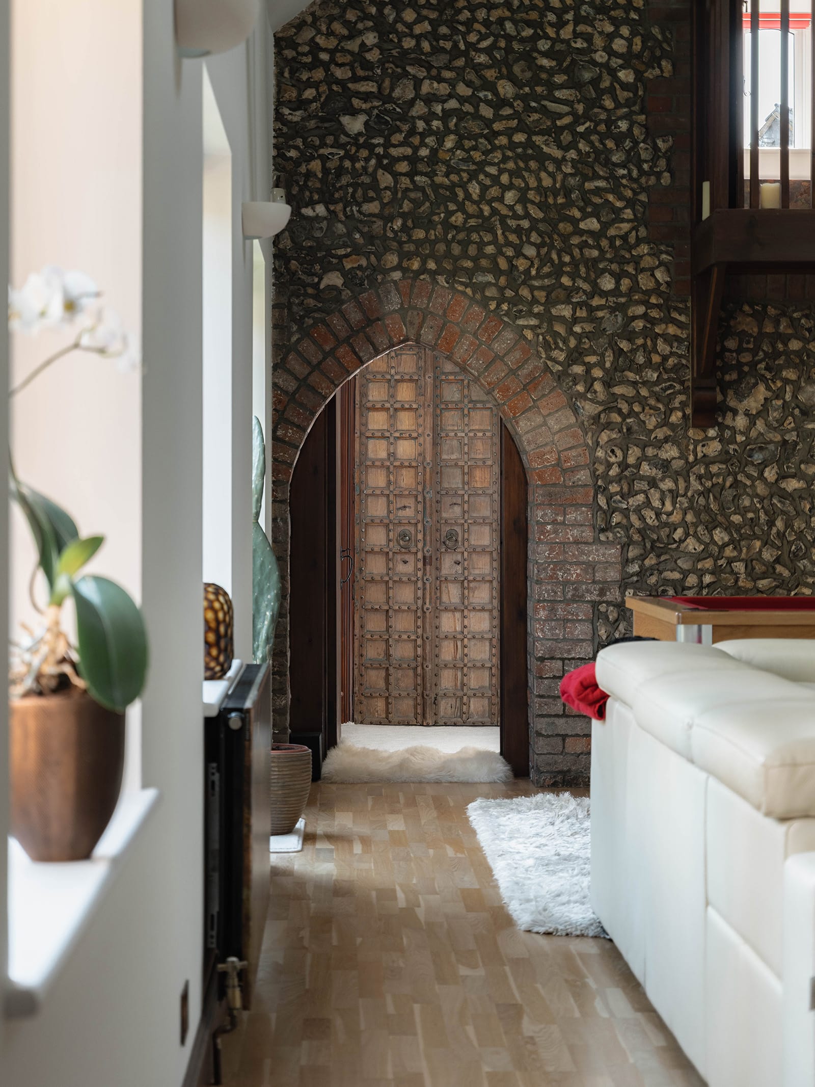 Traditional flintwork exterior and interior detailing, echoing the local vernacular