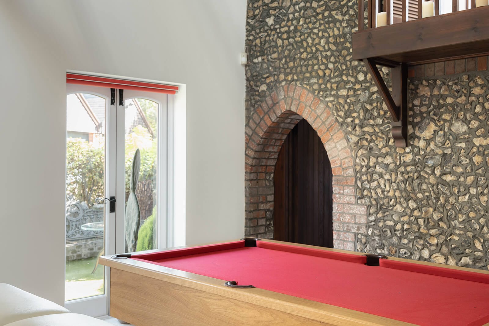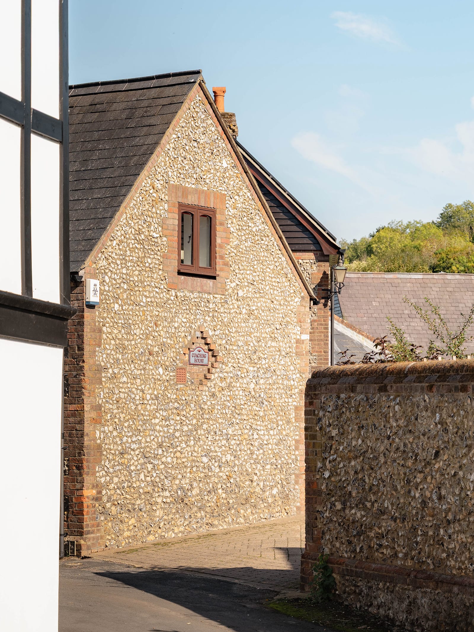 Traditional flintwork exterior and interior detailing, echoing the local vernacular