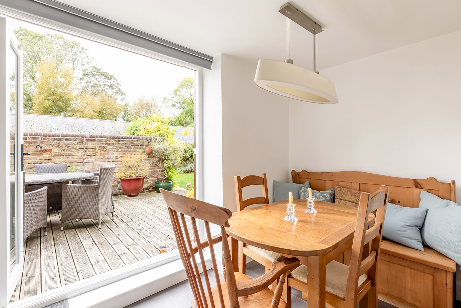 Modern kitchen/breakfast room with bifold doors opening to the garden