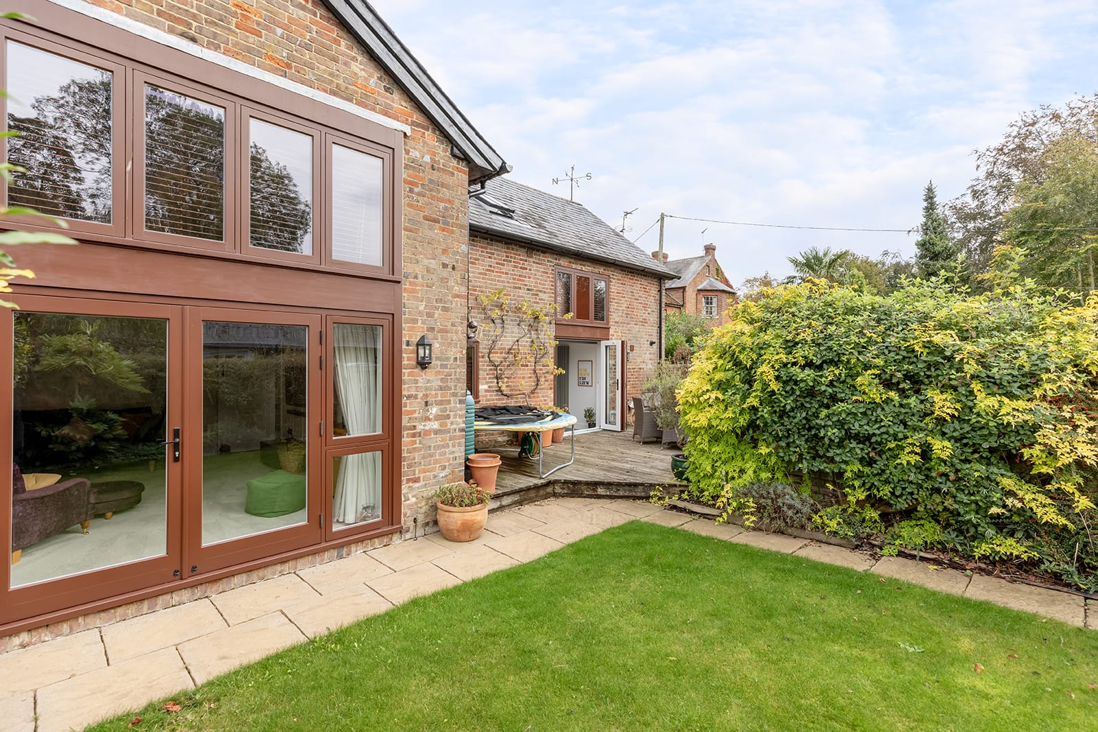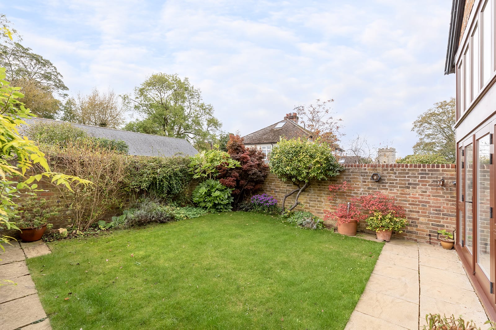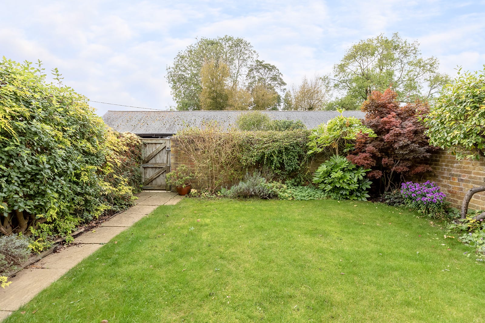 Secluded south-westerly garden with lawn, decking and gated rear access