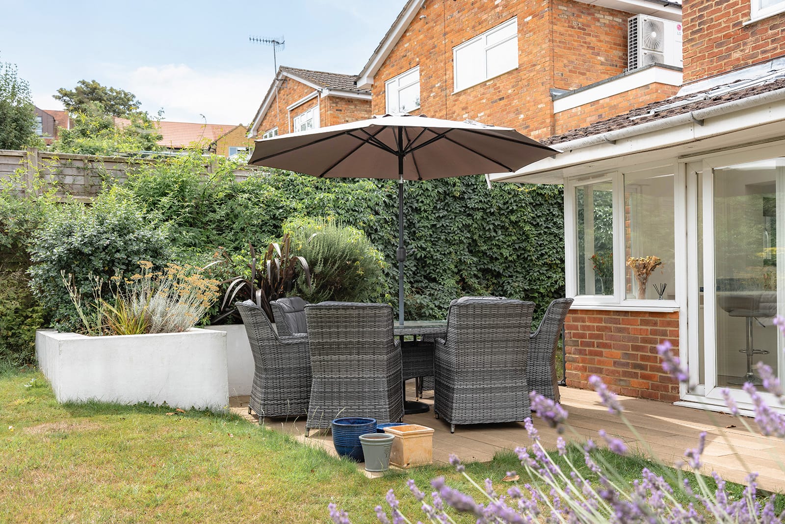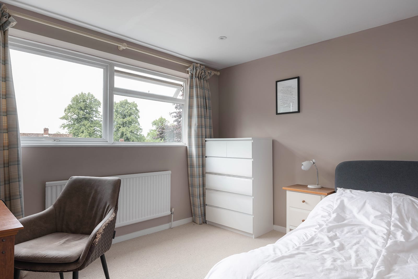 The garage adjoins the house, with a private driveway and a lawned garden to the front. The setting is both peaceful and practical, a little over half a mile from the High Street and within easy walking distance of the railway station and local schools.