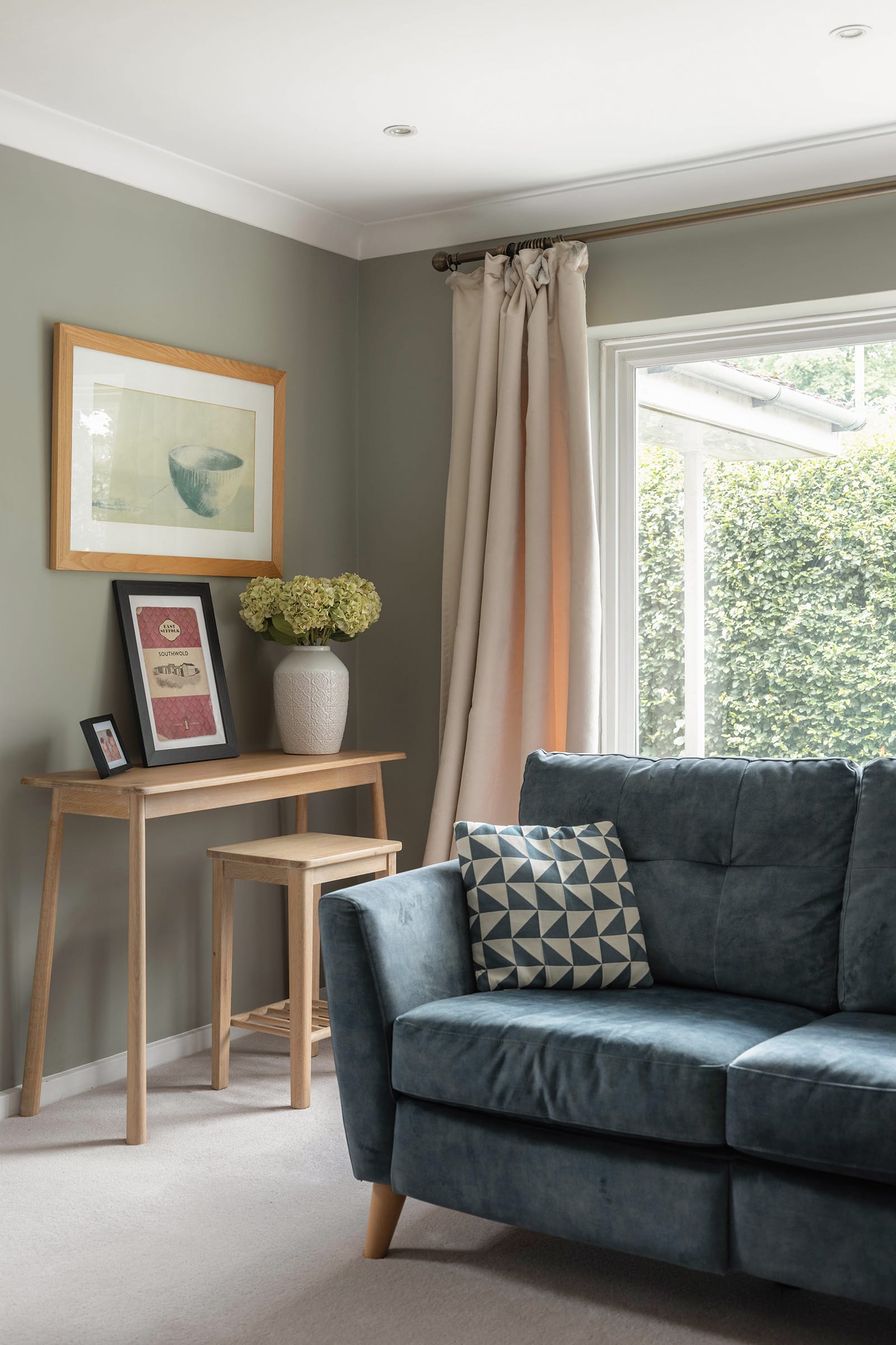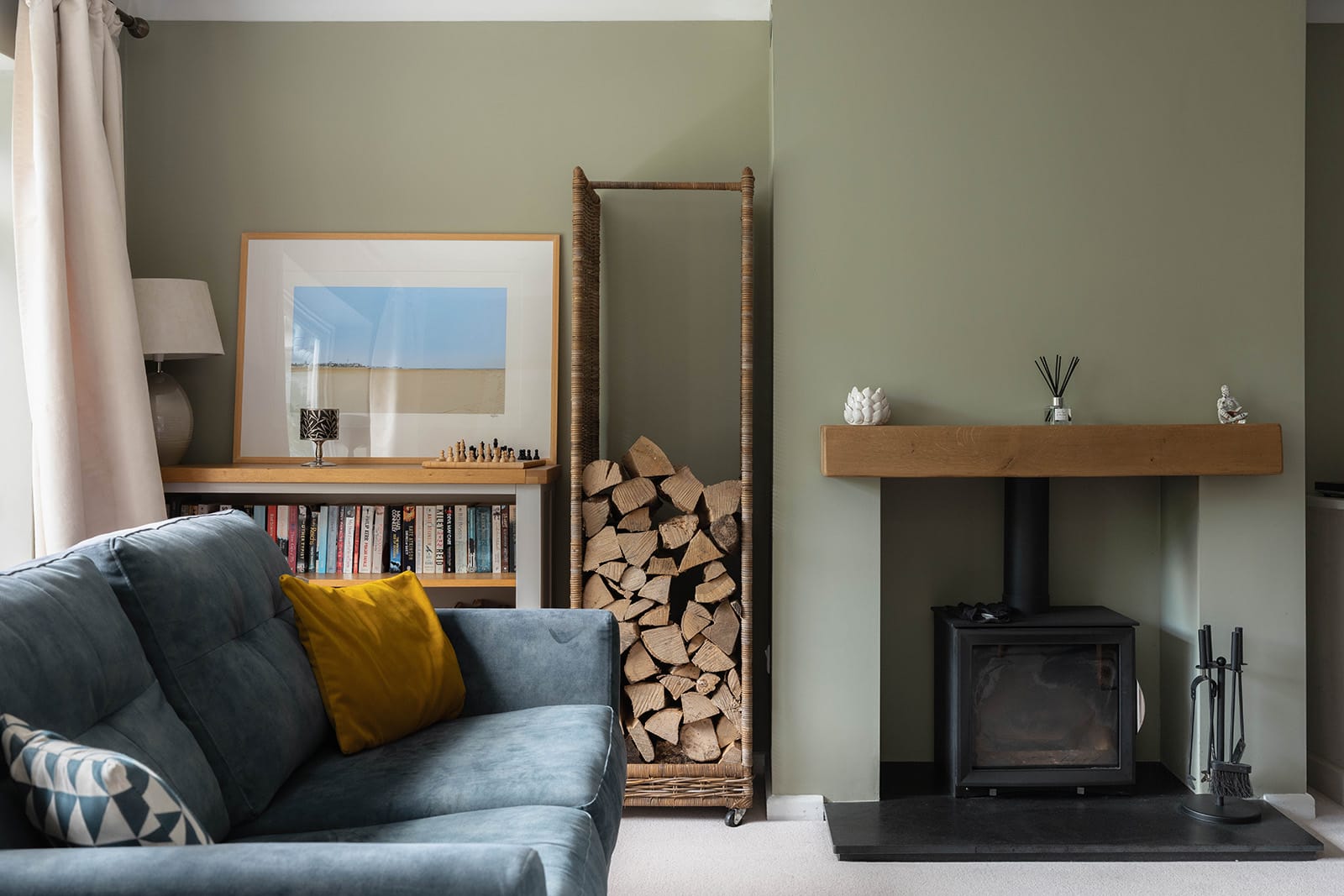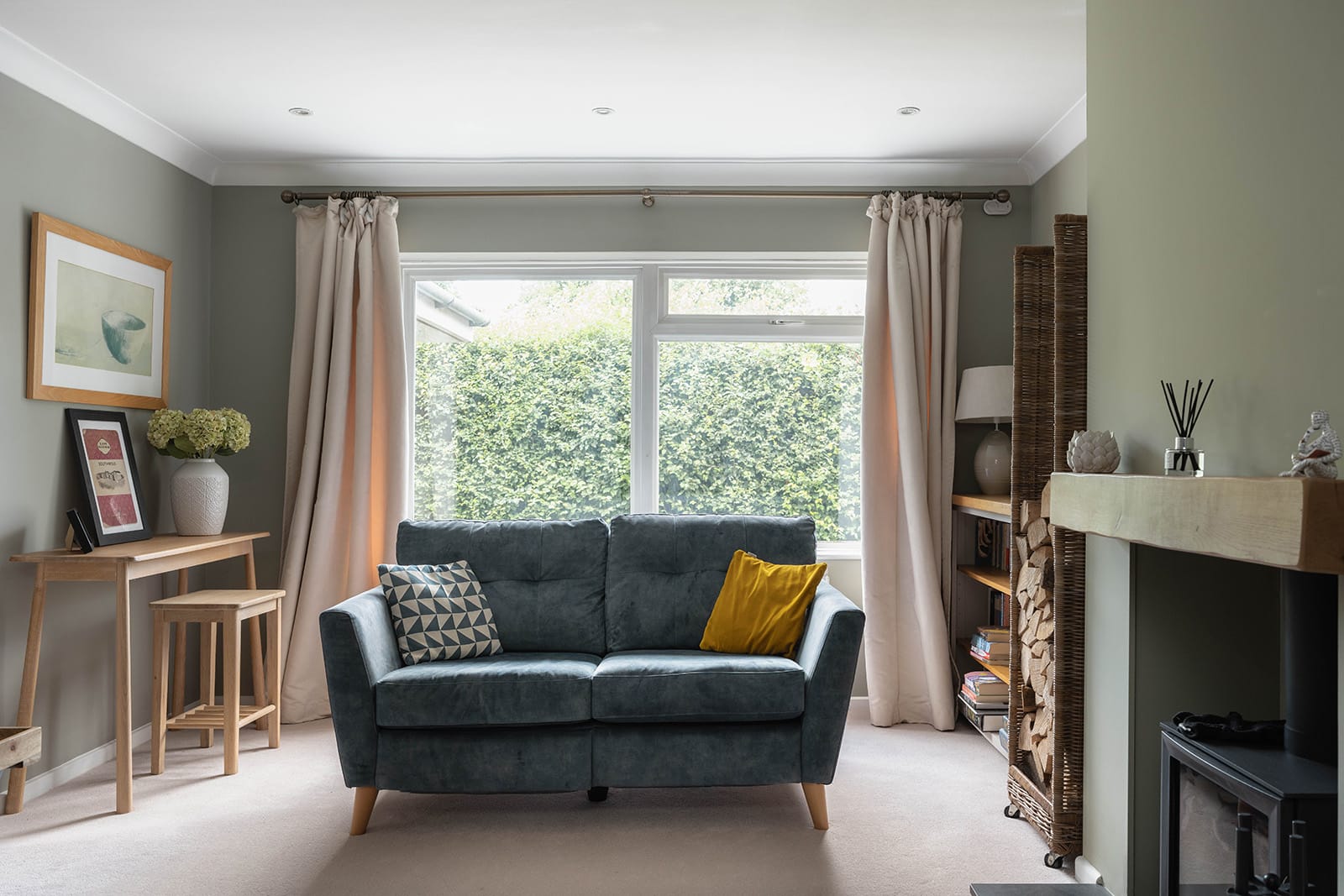 The architecture of the period is expressed through large picture windows and an open-plan layout; hallmarks of a time when light and space were brought to the fore. At the front, the sitting room is defined by a wide window framing the garden and a wood-burning stove that adds both warmth and character.