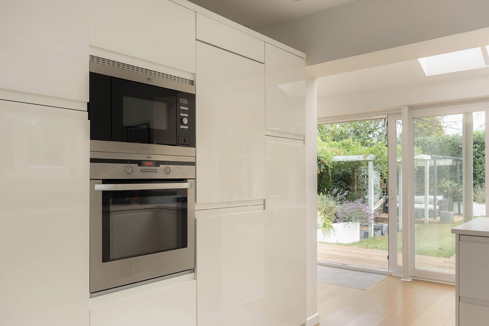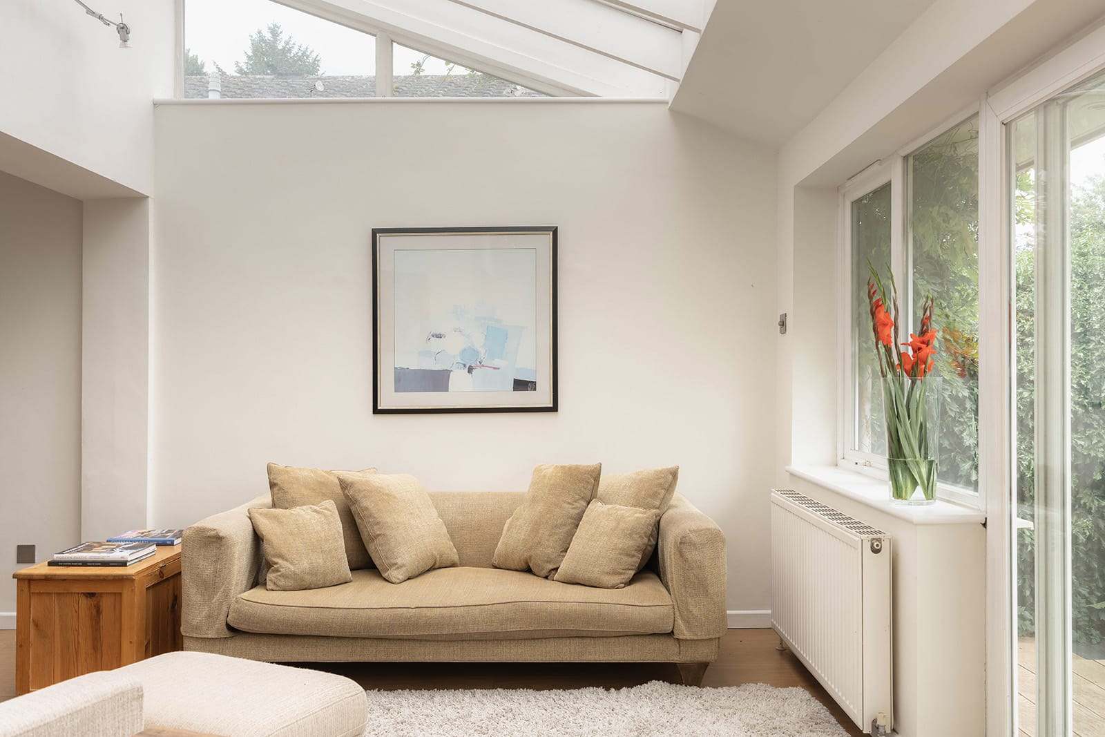 Tucked discreetly behind its mature hedge, on a gently ascending plot, this early 1970s family house pairs the generous proportions of its modernist origins with a carefully conceived extension that responds intuitively to twenty-first century life.