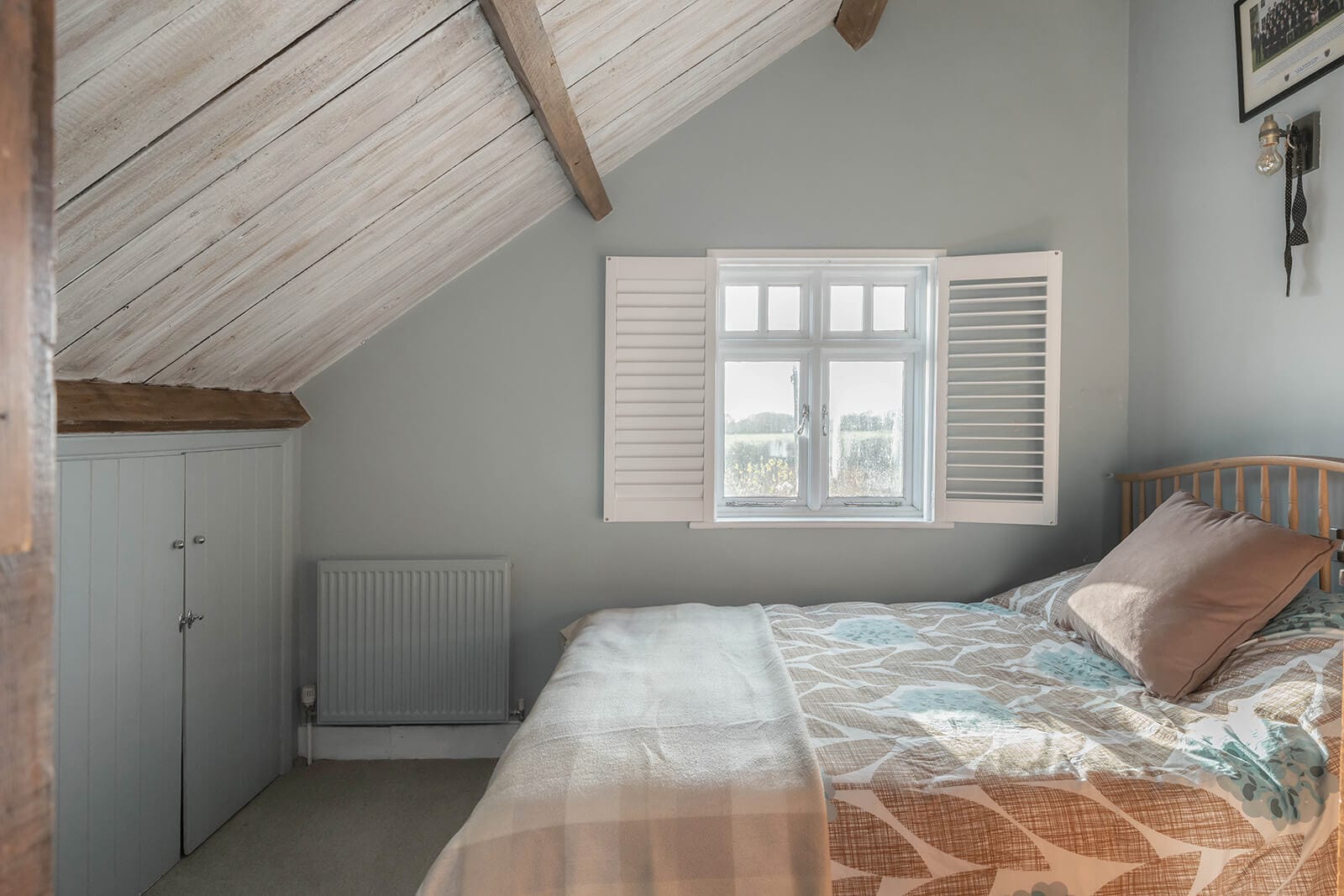 A large ground-floor bedroom – equally suited to becoming a dining room or another reception space, if preferred – opens straight onto the garden, offering a flexibility entirely in keeping with the house’s unpretentious intelligence. A cloakroom completes this level.