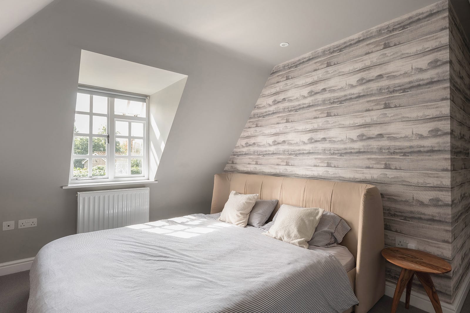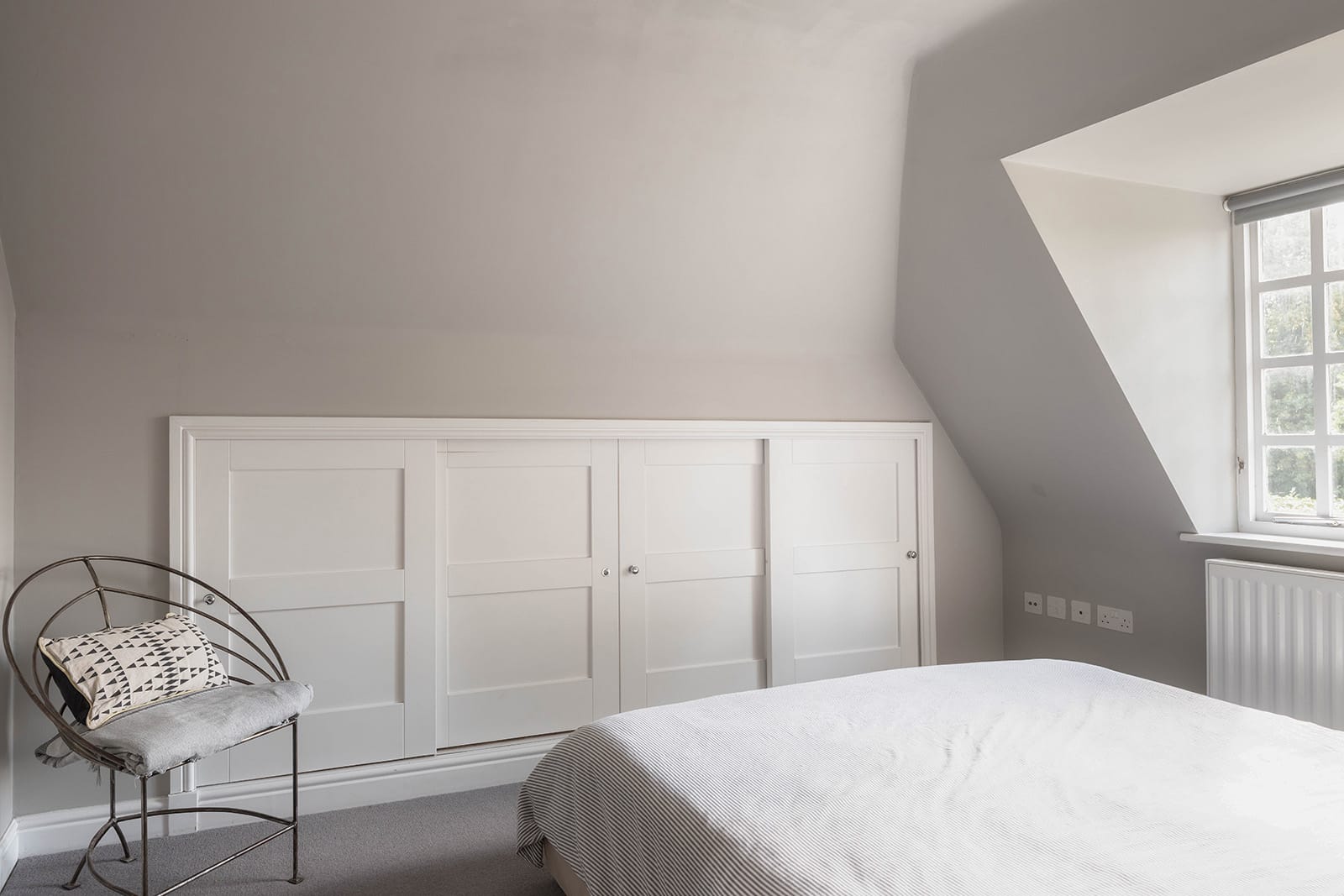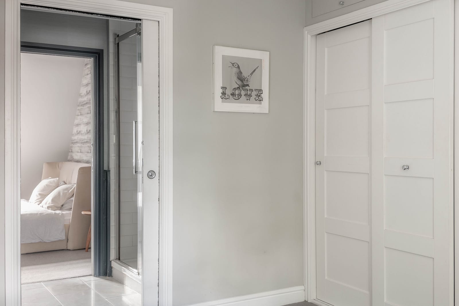 Upstairs, four double bedrooms offer ample space for a growing family. The principal suite shares a contemporary Jack-and-Jill shower room with the second bedroom; a layout that is both practical and subtly luxurious. The remaining rooms are served by a beautifully detailed family bathroom, complete with Neptune fittings and underfloor heating. Storage is generous throughout, with built-in wardrobes and cleverly integrated eaves space.