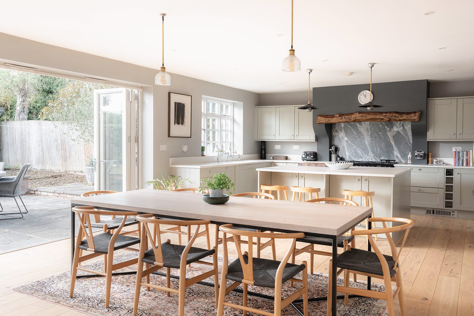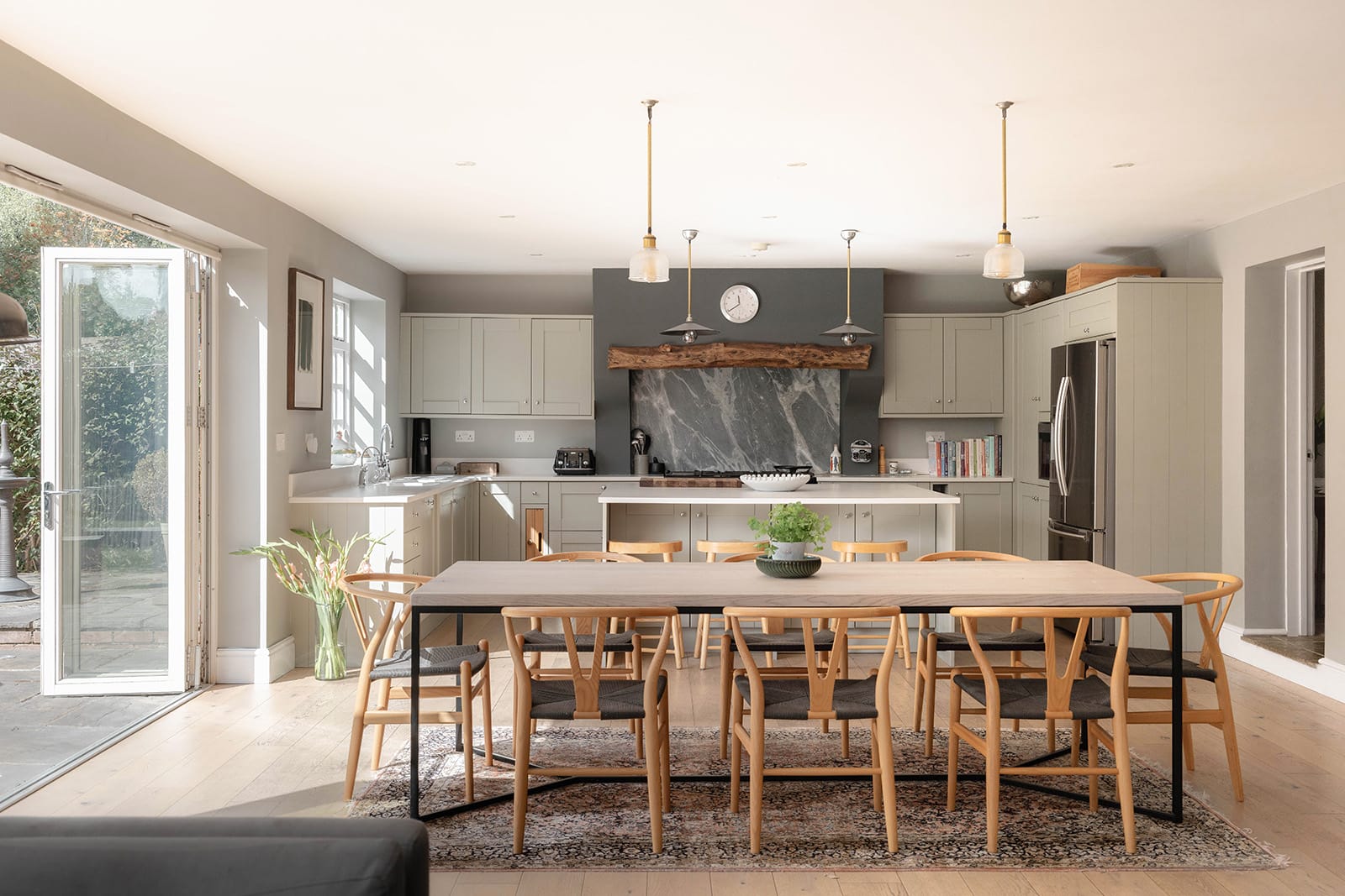 40ft open-plan kitchen, dining and family room with bifold doors to garden