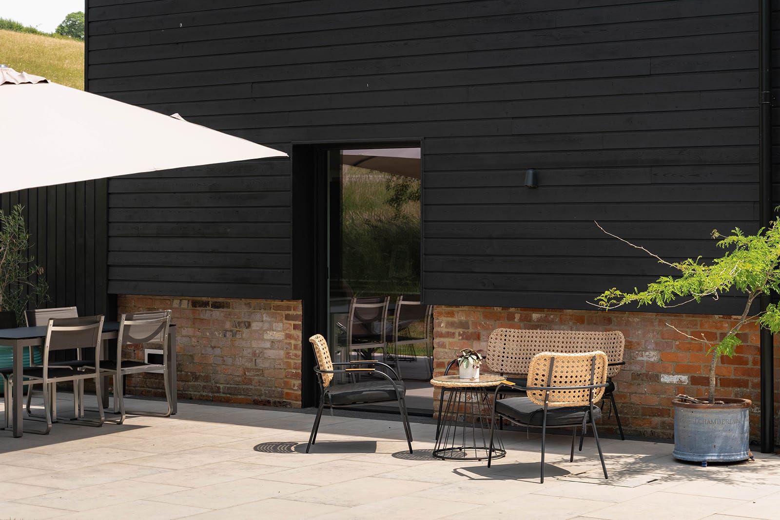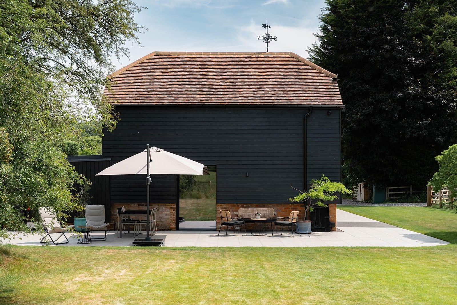 Thoughtfully landscaped gardens, porcelain terraces, and countryside setting