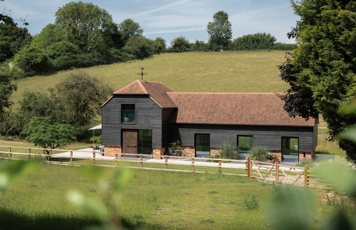 Designed by Wide Sky Architects and completed in 2023, this remarkable home takes its visual cues from the quiet dignity of traditional agricultural buildings. And, while referencing the barn vernacular in silhouette and materiality, it has also been created with a resolutely contemporary vision; where clean lines, expansive glazing and refined detailing come together to form a house that is deeply rooted in its setting, yet confidently of its time.