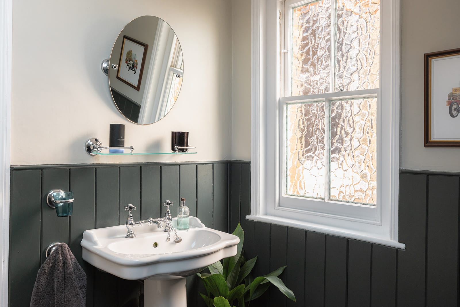 The first floor is home to two well-sized double bedrooms, with the larger of the two having originally been the master. This room features a lovely period fireplace and built-in wardrobes. Both bedrooms are served by stunning bathrooms, with the added luxury of underfloor heating and marble tiles.