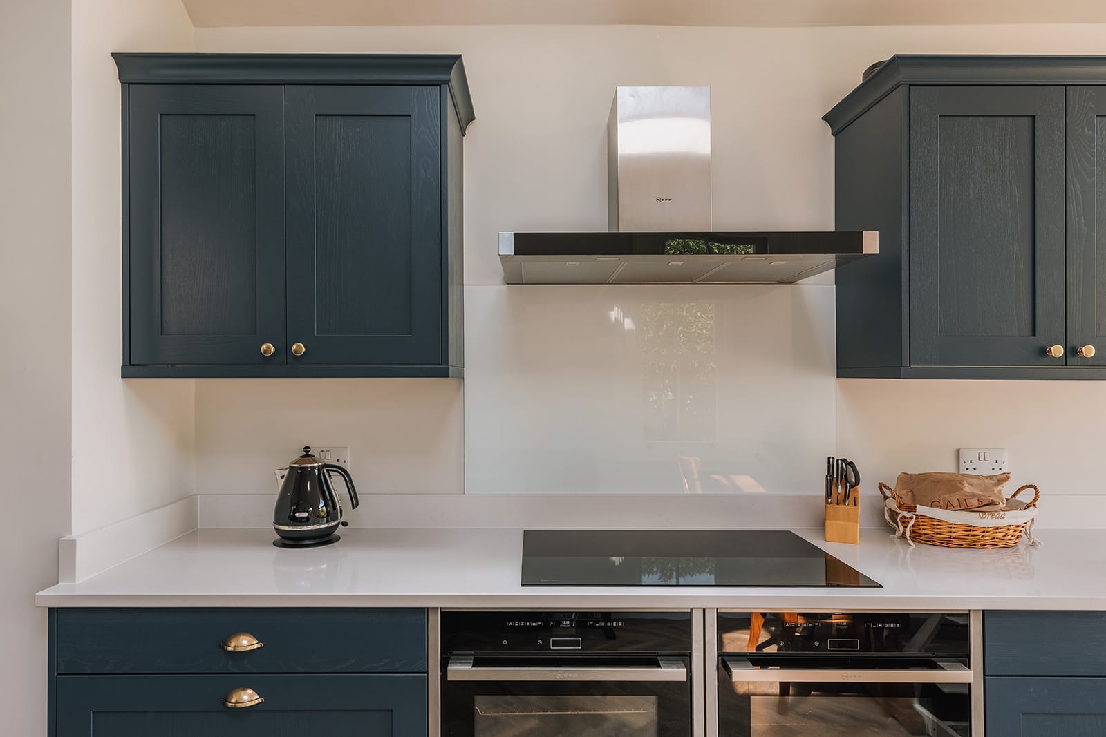 As you walk through the property, an unexpected surprise is the stylish and contemporary kitchen/dining room located to the rear of the house. At a generous 23ft long, this beautiful space is further enhanced by a vaulted ceiling and the bi fold doors which lead out to the garden. Crisp, ink blue fitted kitchen units are complemented by white quartz worktops.