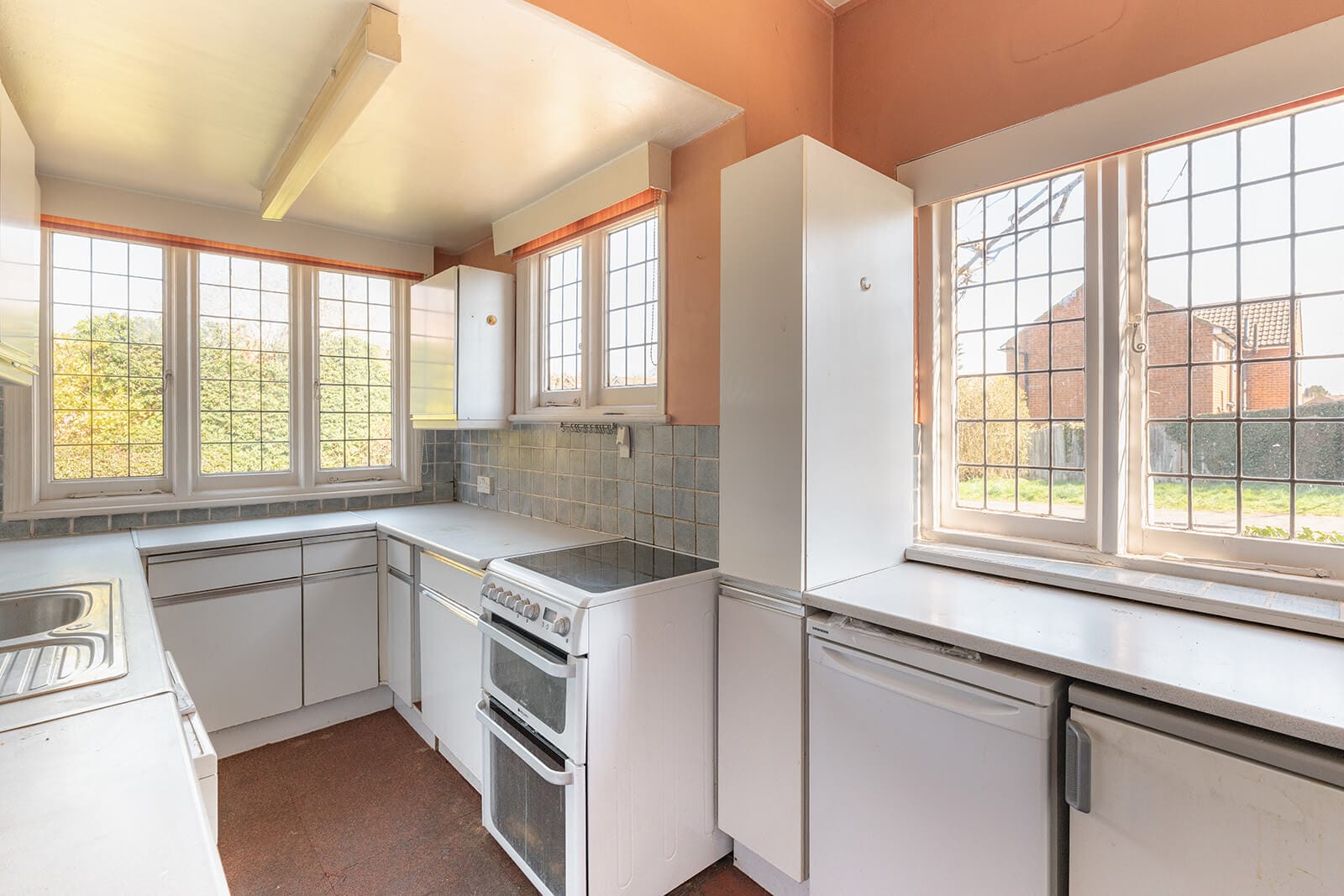 Accessed from Midcot Way, the front door opens into a spacious reception hall – a versatile space that could serve as either a breakfast room or a study. From here, a glimpse of the property’s timeless charm and character reveals itself, with the flow of the home gently guiding you deeper, first into the kitchen – a light-drenched room with a dual aspect, its airy atmosphere promising endless culinary possibilities.