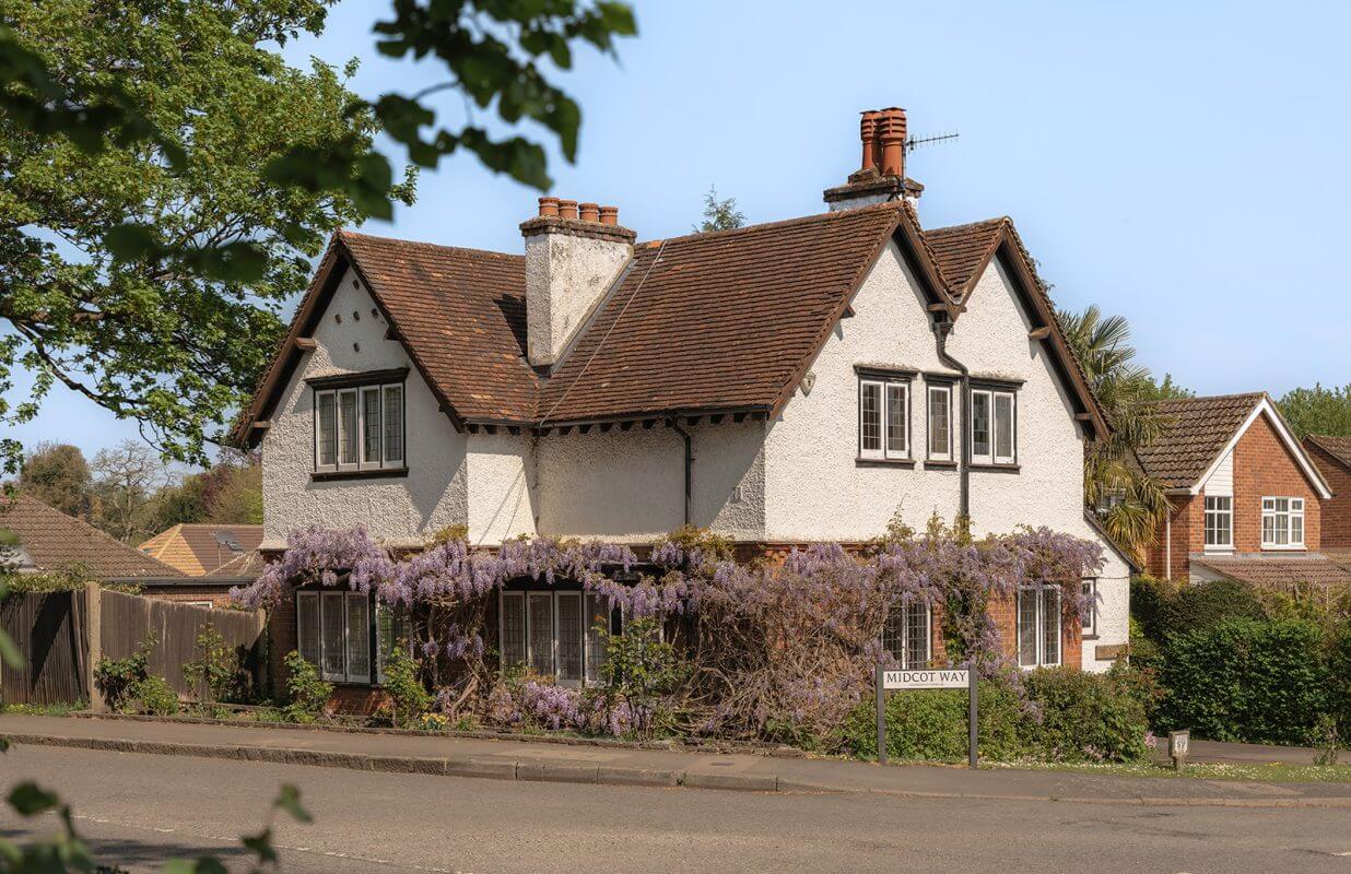Outside, the gardens unfurl like an artist’s palette, with mature plantings, a lush lawn and a well-worn patio. The front is framed by the iconic Wisteria and rose bushes, offering a riot of colour in the warmer months. Off Midcot Way, the property is completed by a garage and driveway, offering both practicality and privacy.