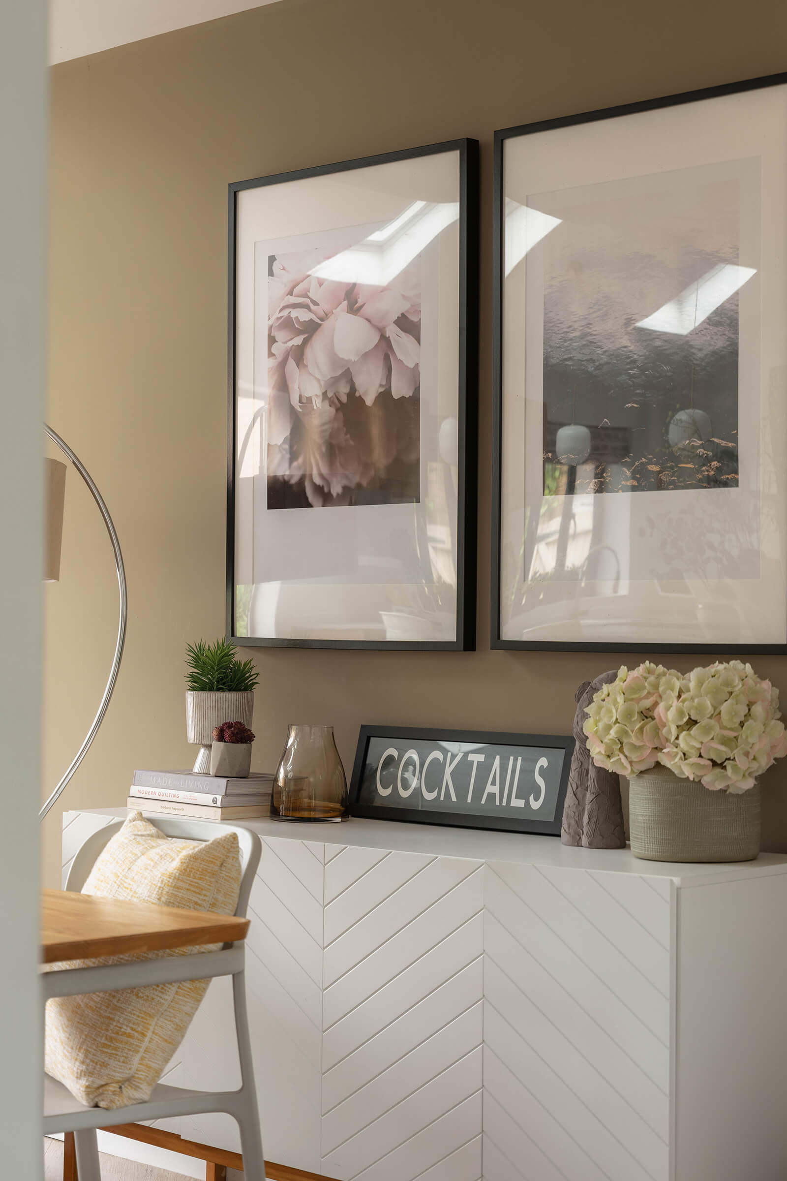 Inside, a generous hallway sets the tone – calm, connected and designed with flow in mind – while Karndean flooring runs throughout the ground floor, linking each space with quiet consistency. To the front, the sitting room is light-filled and well-proportioned, centred around a gas fireplace that provides a simple, reassuring focal point.
