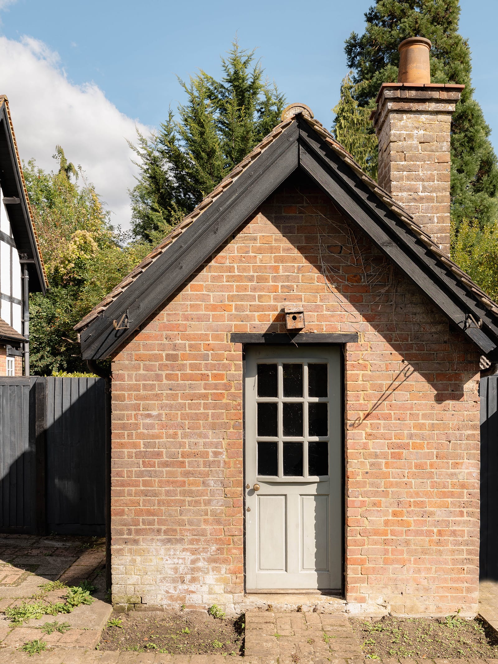 Outside, the rear garden is laid out simply and effectively, with a central lawn edged by a paved path. A brick-built outbuilding, formerly the washhouse but now repurposed as a utility room, retains its own fireplace, quietly echoing the craftsmanship of the main house. It is tiled with underfloor heating, and the building has water, drainage and power. To the front, a gravel driveway provides off-street parking for two cars and there is a lawn edged with flower beds.