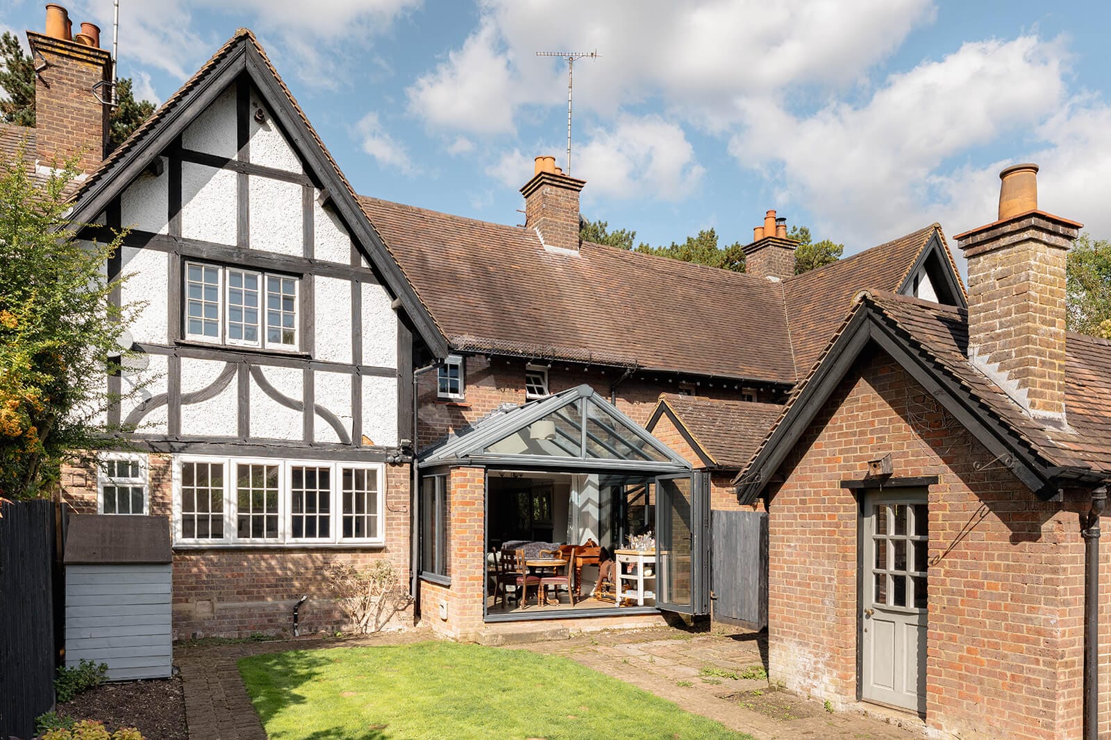 Originally built as part of the Pendley Manor Estate, this beautifully preserved Arts and Crafts cottage dates to around 1912. One of a striking terrace of four black-and-white homes, collectively known as New Villas, the house sits well back from the road, just moments from Tring railway station, and offers an elegant home ideally suited to both commuters and admirers of architectural heritage.